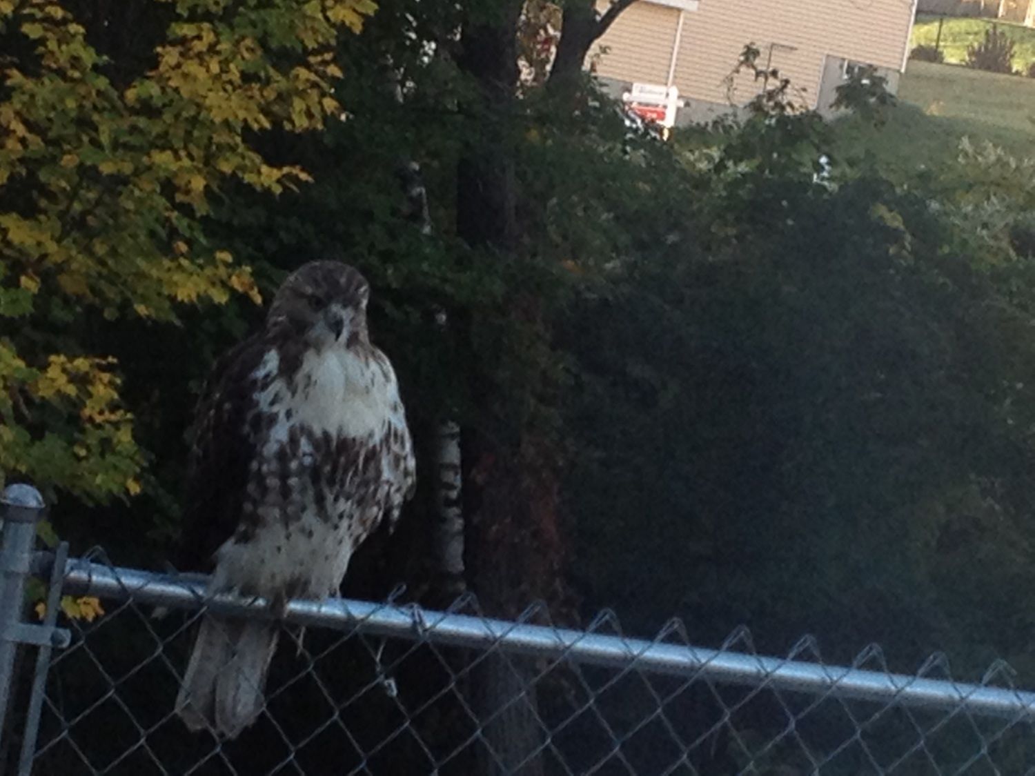 )We don't have chicken because of the lawDefinitely beautiful, but keep your chickens secure! That guy looks like a sharp-shinned or Cooper's hawk, which aren't as bad as red-tails, but they're can still cause problems. You're lucky if you get any snow, especially with such a warm year.