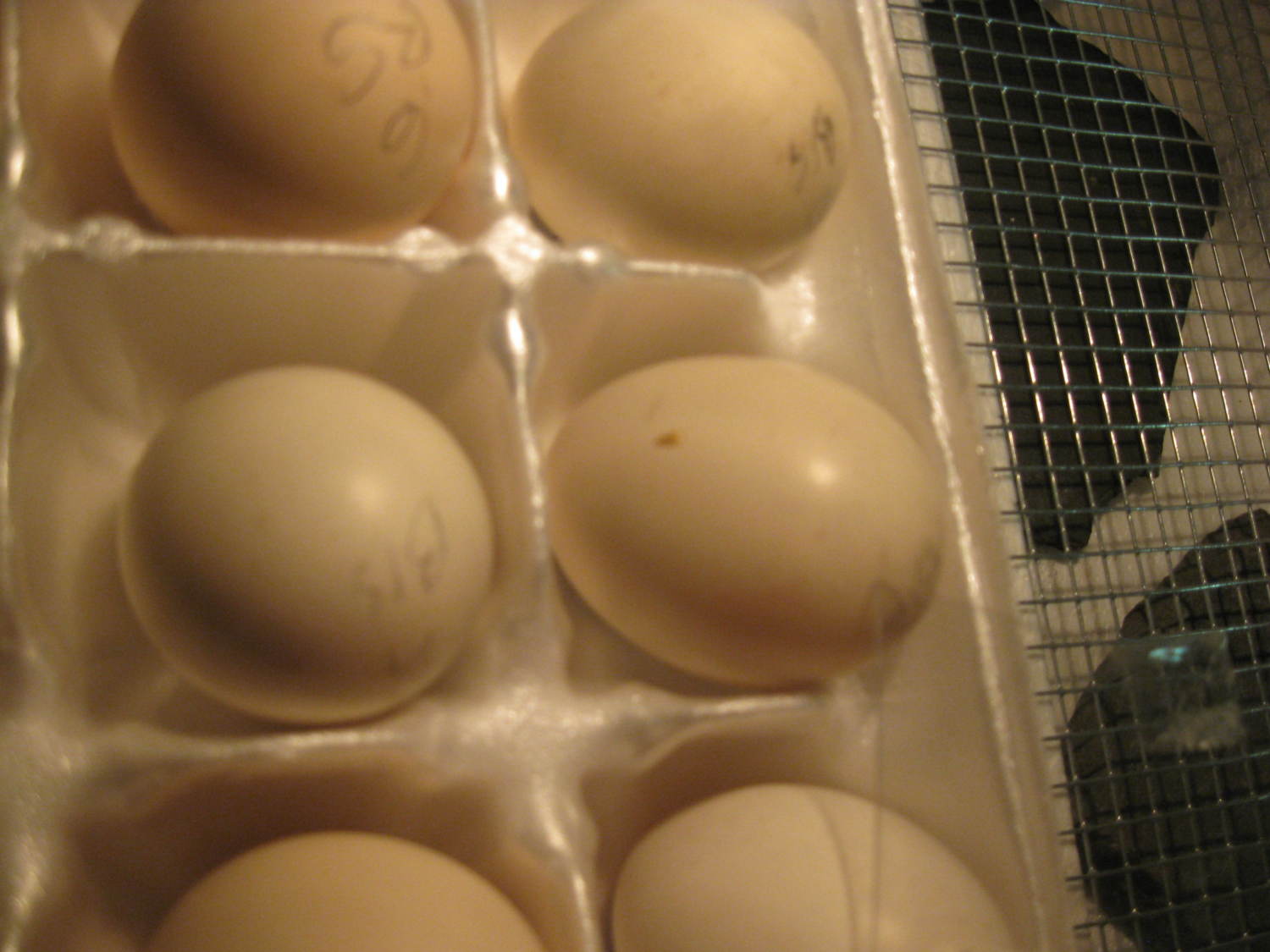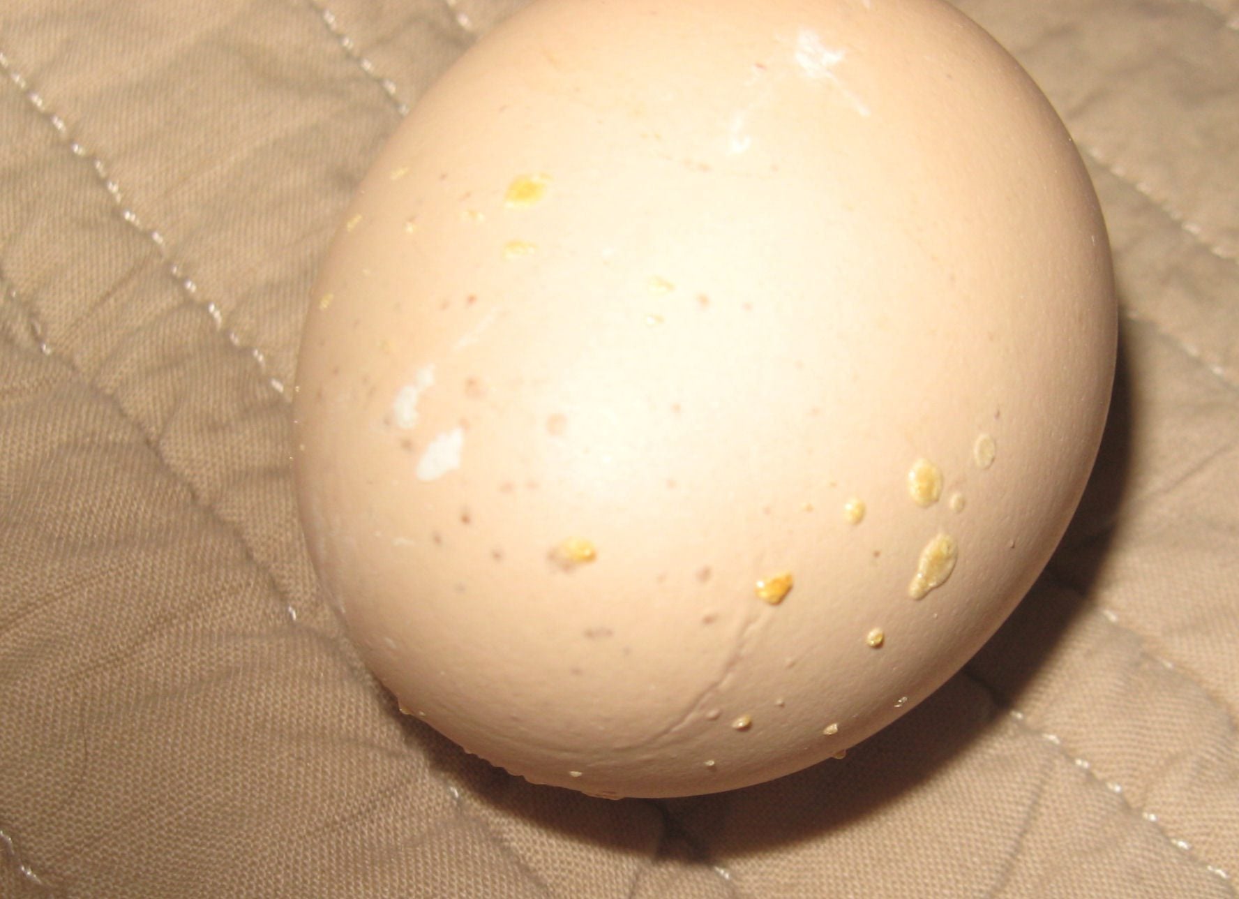 Last 2-3 hatches i seem to get eggs that even some early (less than a week)on have raised dots on the shell that look a little yellowish and likedots of sand .I assume the are weeping. and its drying ..as its hard but can be picked off too.