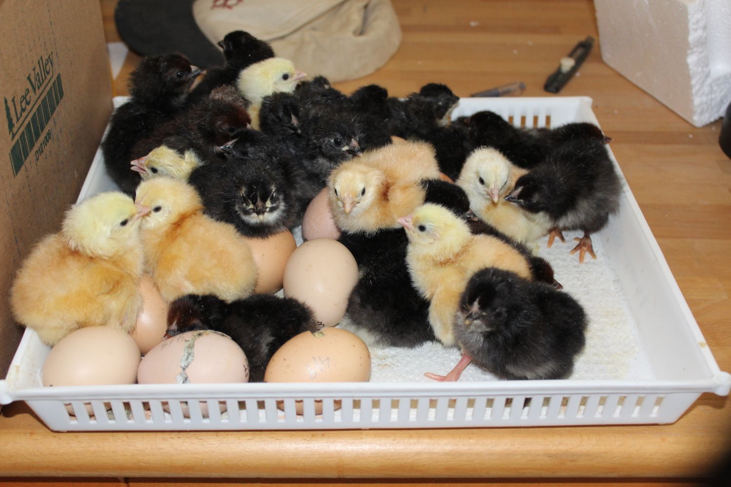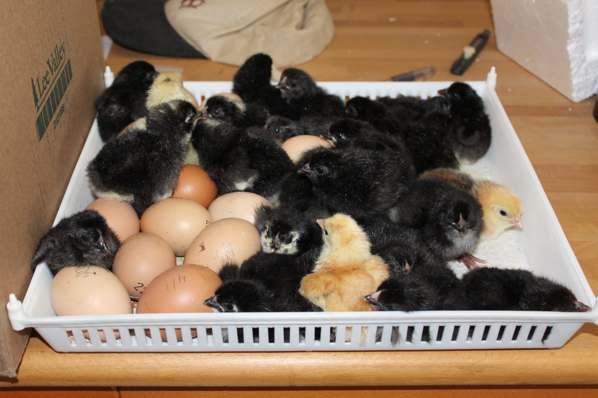 So, this is my 5th hatch of ~100 this year. Things are getting better, I have an 80% fertility rate and an 80% hatch rate, so 64 out of 100 now. I'm hatching my own eggs, creating generation 2 of my own breed. My layers have come back into their own and are now giving me 25 or so (from 38 layers) a day...so I'm able to incubate nothing but fresh eggs (e.g. < 7 day old eggs). I have been incubating eggs < 63g in order to fit 98 into my Ova 100 (49 per tray). I'm not suggesting that larger eggs wouldn't hatch well, only that if I use larger eggs I have to set fewer eggs.