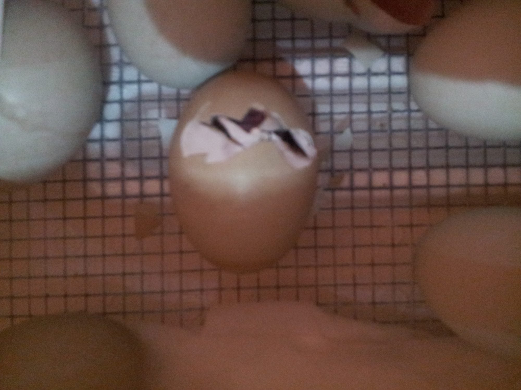 I have 4 in the bator and 4 in the brooder, did a quick candling on the eggs I could keep straight while I was pulling out the chicks and purged 3 more eggs that weren't fertile. I have one egg that I've started to do an assist on - the outer membrane keeps drying out- humidity has started dropping off in spite of the wet wash cloth and adding water to the bater, and the wet papertowel wrapped around the 9th one, which I think is the last one I'm going to get out of this run. Just have to keep my fingers crossed that the temperature won't go nuts when our temps shoot up 30 degrees later this week and then drop back down.
