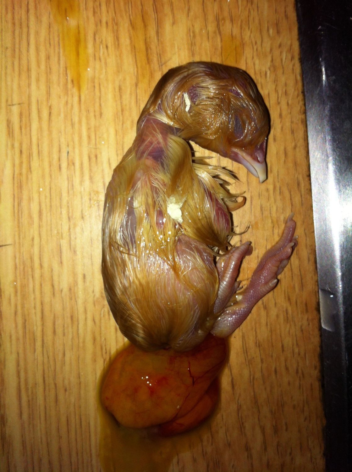 as you can tell from the sack, I think he was underdeveloped or died a couple days ago, I feel horrible!!