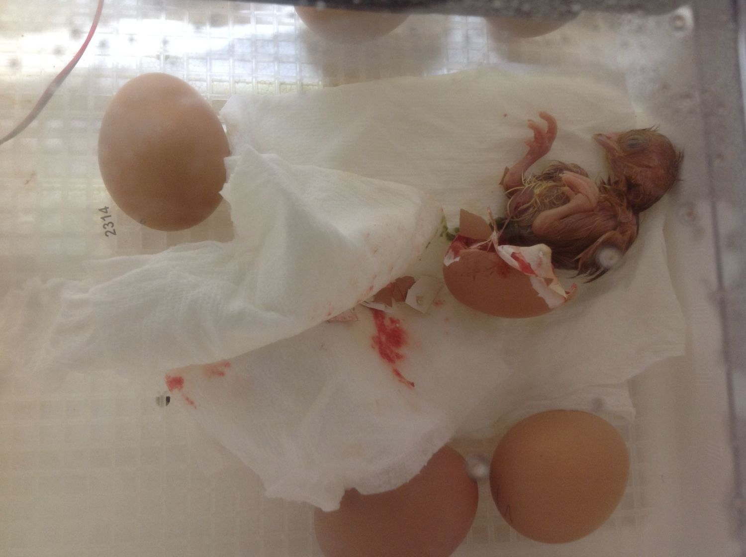What is the green attached to baby chicks back. It's attached to egg shell too. It hatched at 20 days