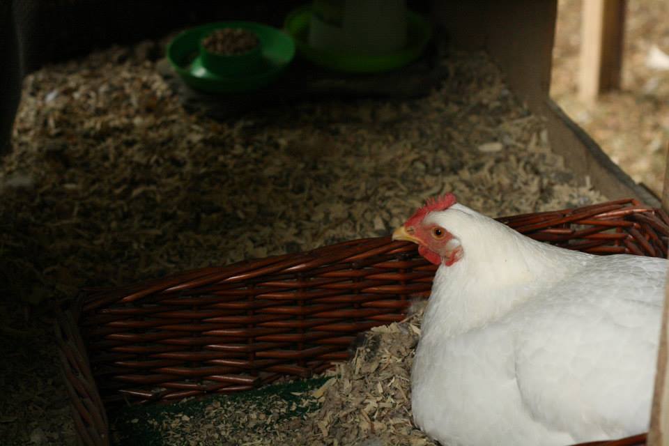 She's got the back side of the coop to herself, with food and water. I will put chick starter in the feeder Sunday night.