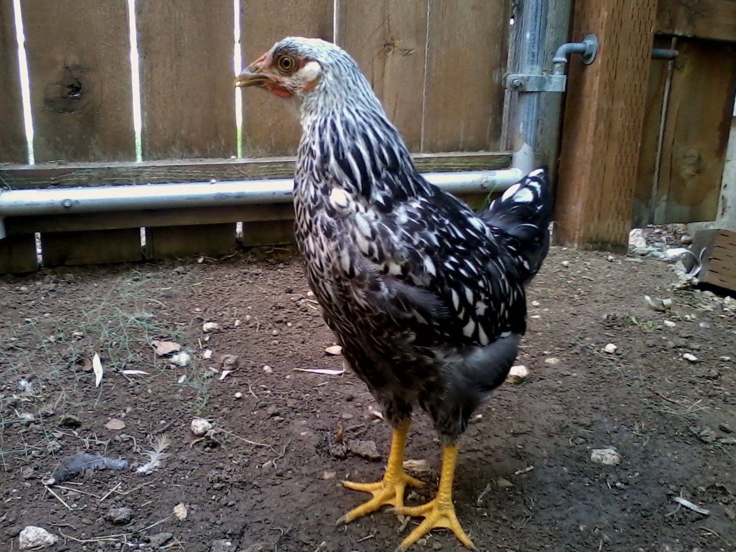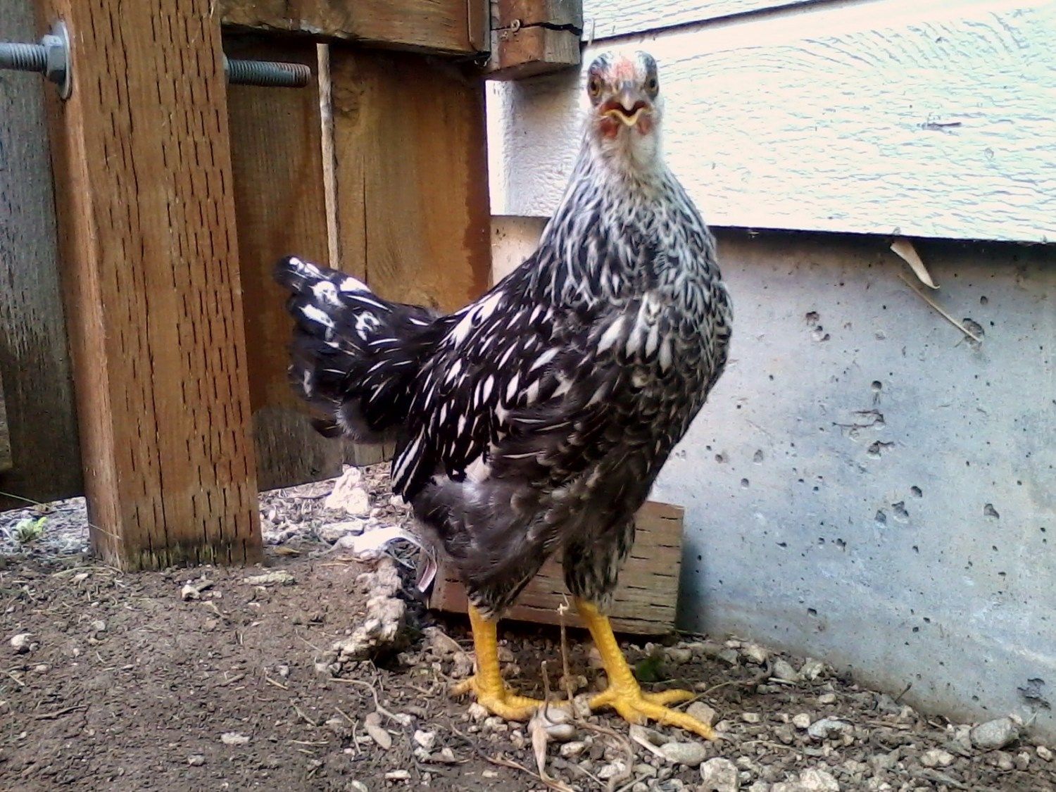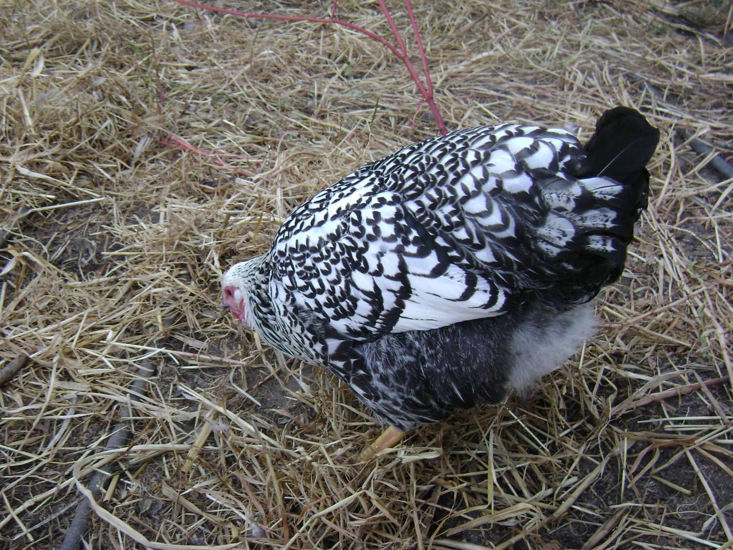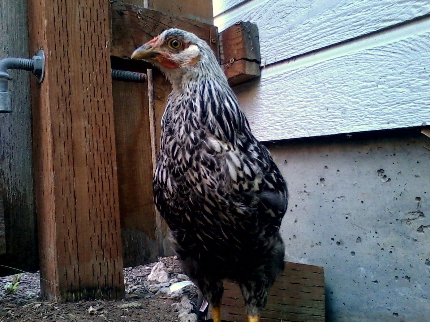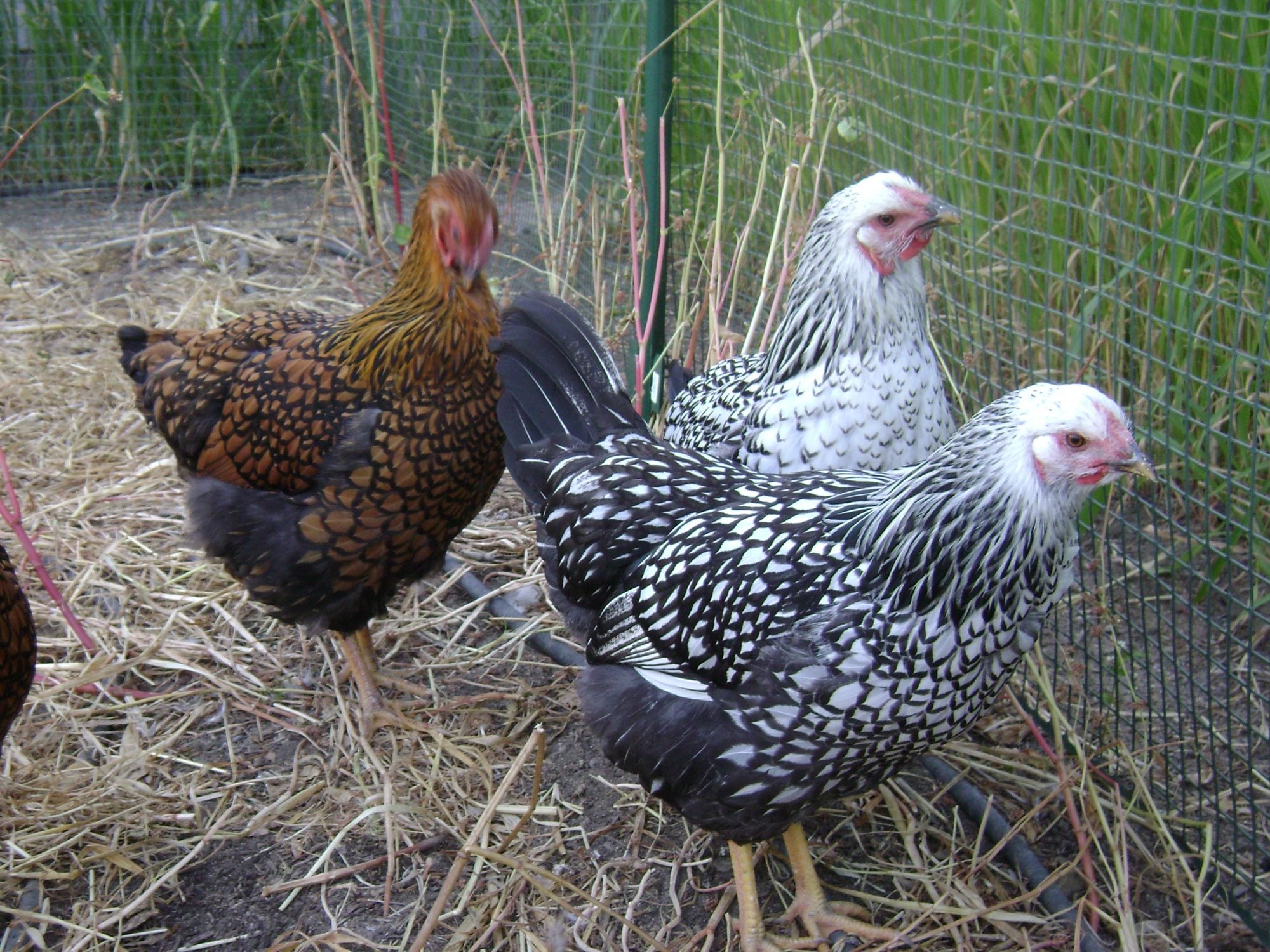 Goldie to the left, Mollie center, Millie in front of Mollie & Gertrude to right. We got these as Day old chicks, handled them often until they made it clear they didn't want to be handled at which point we continued to hand feed them treats. They're not afraid of us, if I'm working in the run they're right there, but they don't like to be touched. Last night however, Gertrude, squatted & let me pet her momentarily, then it was business as usual. I should have grabbed a fist full of feathers, pinned her to the ground & slapped her around a bit. Maybe they would like us better!