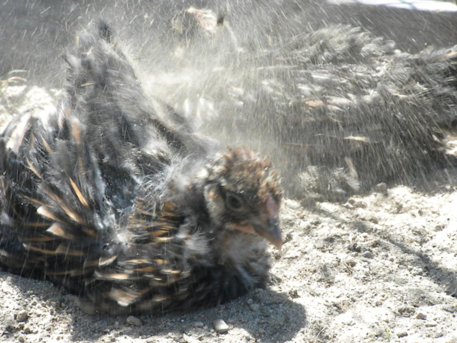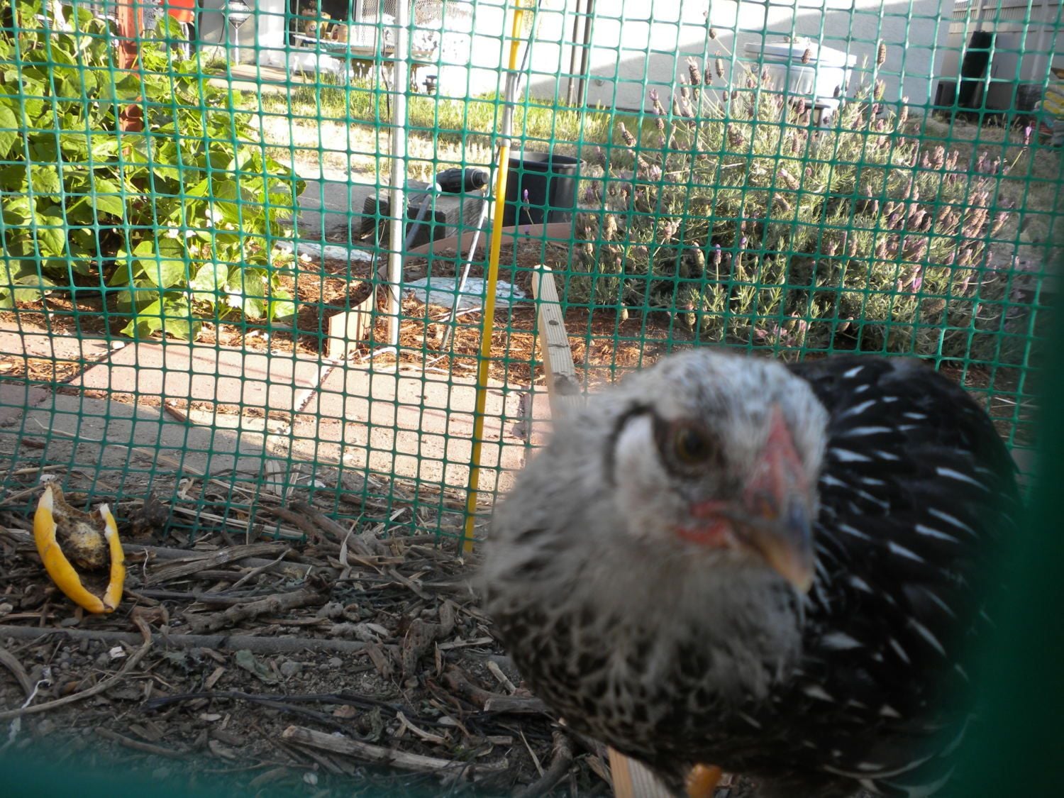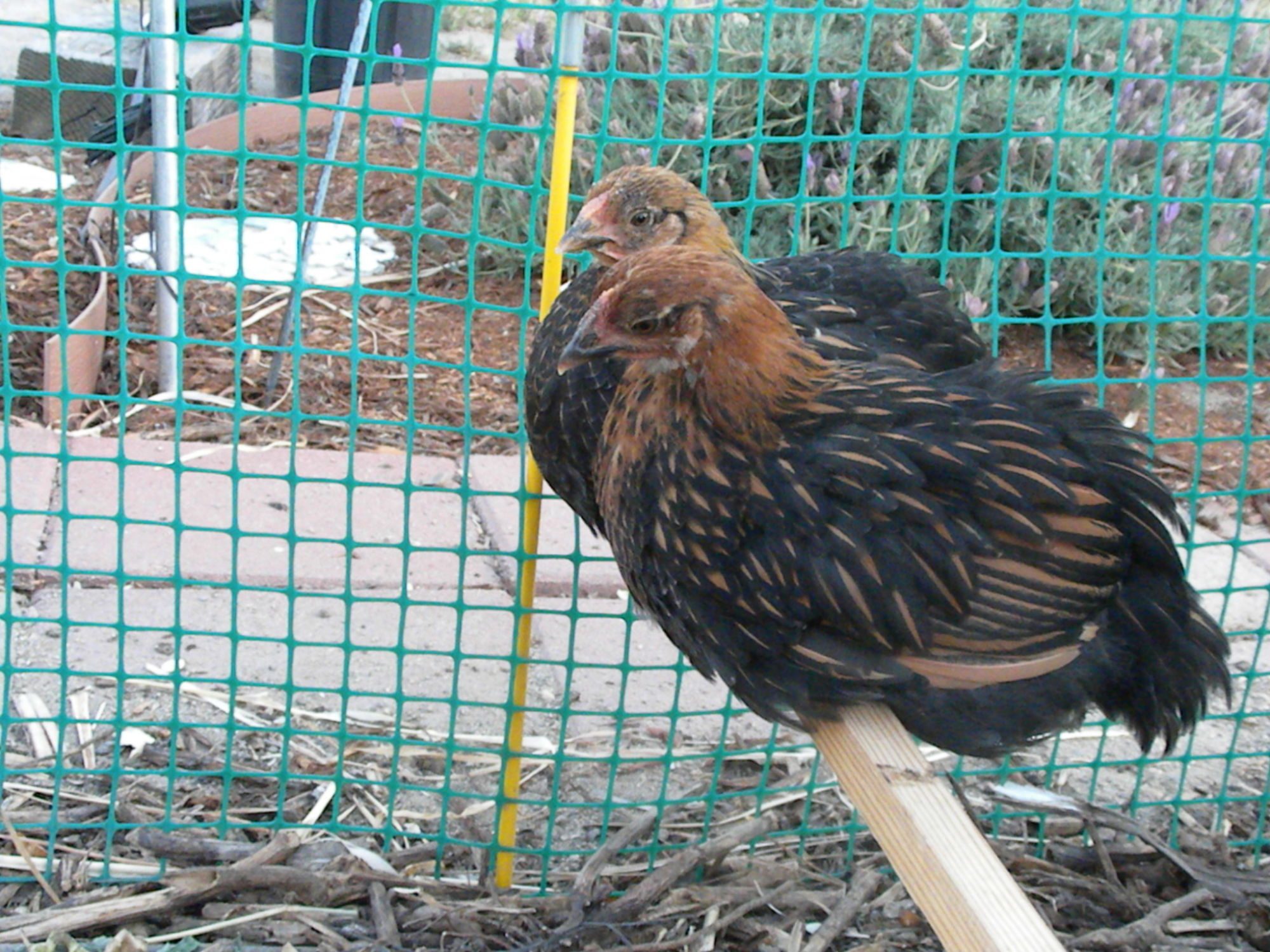 Very hot this day as evidenced by the droopy wings. They've done well in the California heat, seen temps up to 111F