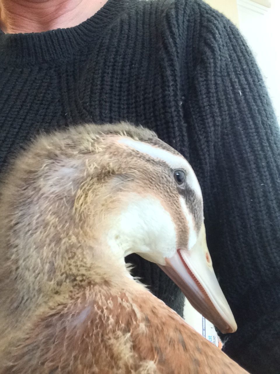 I had to bring in my Call Hen Penelope this morning ......Yesterday she was dragging a big poop ball that was frozen to her...Accumulated just over the day.....Cold here....This morning she had thick ice on her chest....Dame weather and she is so short......No worries...She is fine and I will bath her today and put her out tomorrow !!:) .......I sure love my Ducks...Spoiled puppies....;)