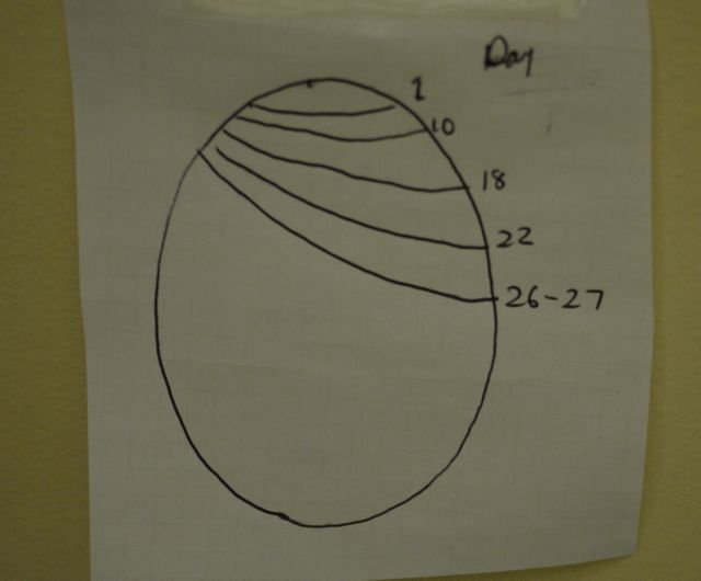 How are your air cells throughout incubation? Are they growing in size properly? Air cell size is the easiest indication of whether or not they are getting the proper humidity during incubation. This is a good chart on duck egg air cell development:
