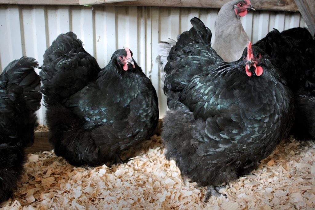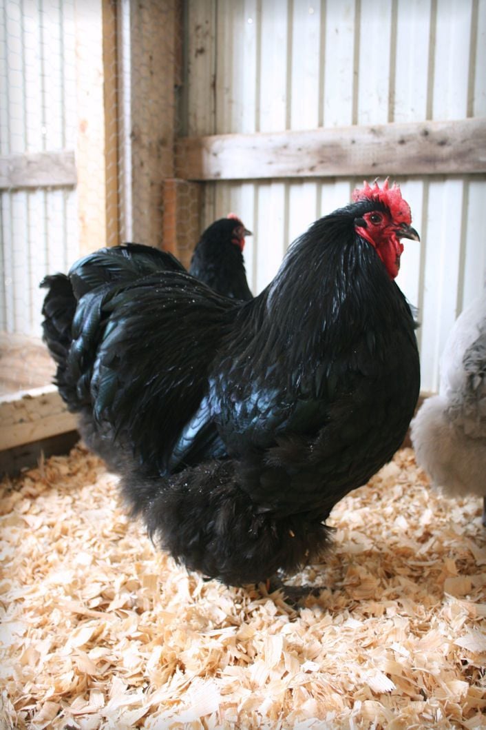 Hollowoakfarm, Here are some pictures. Sorry, not the best. The weather has been awful and they are not really in the mood to go out and show off(That is snow on the cockeral in the first picture). They will be a year in June. They are quite large now and still growing.
