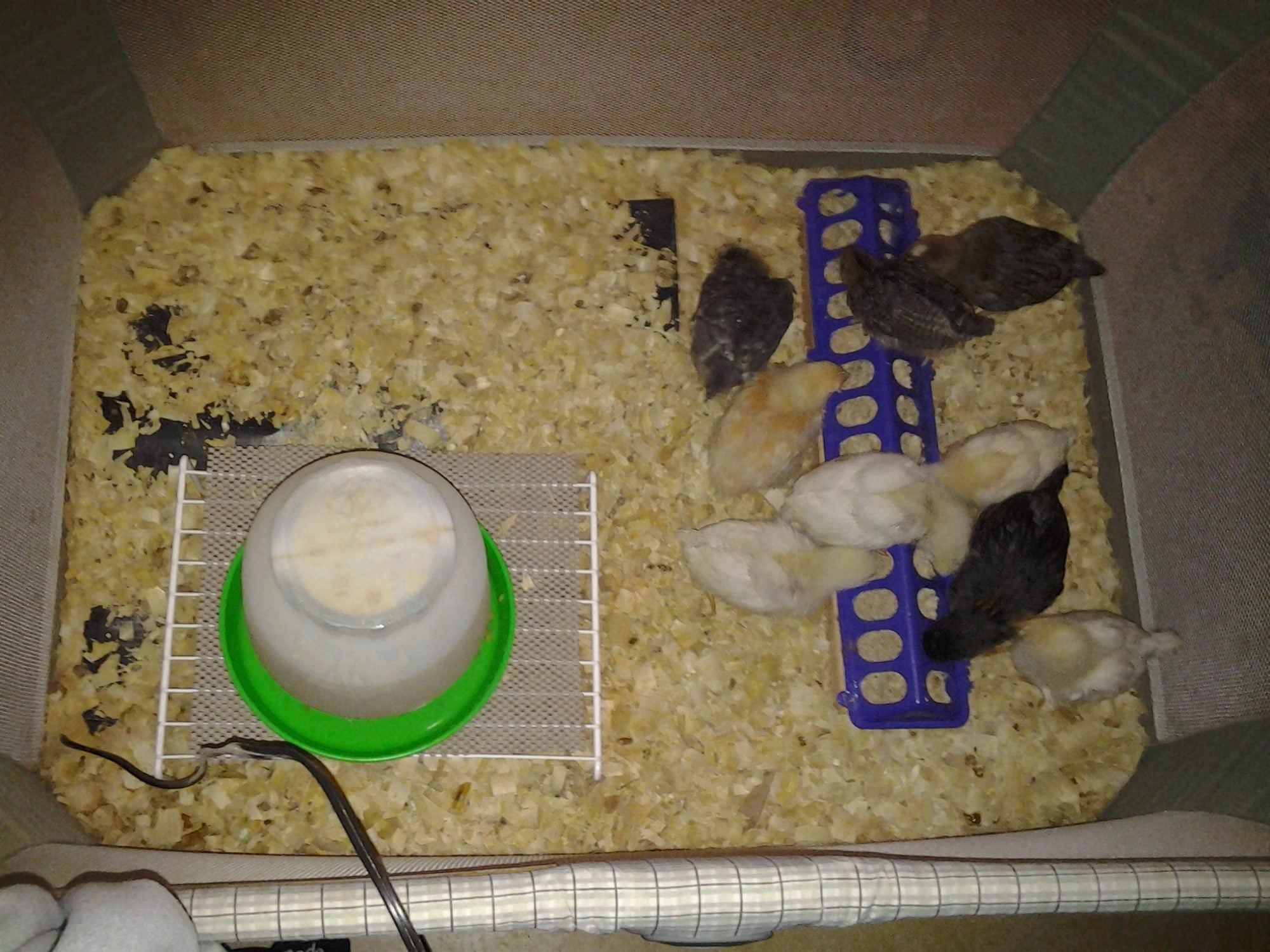 Here are the month old chicks, There a legbar girl from Swidledana and a Lemon Cuckoo Orp and a Rhodebar boy from Papa Brooder. The rest are back yard mixes from my birds.