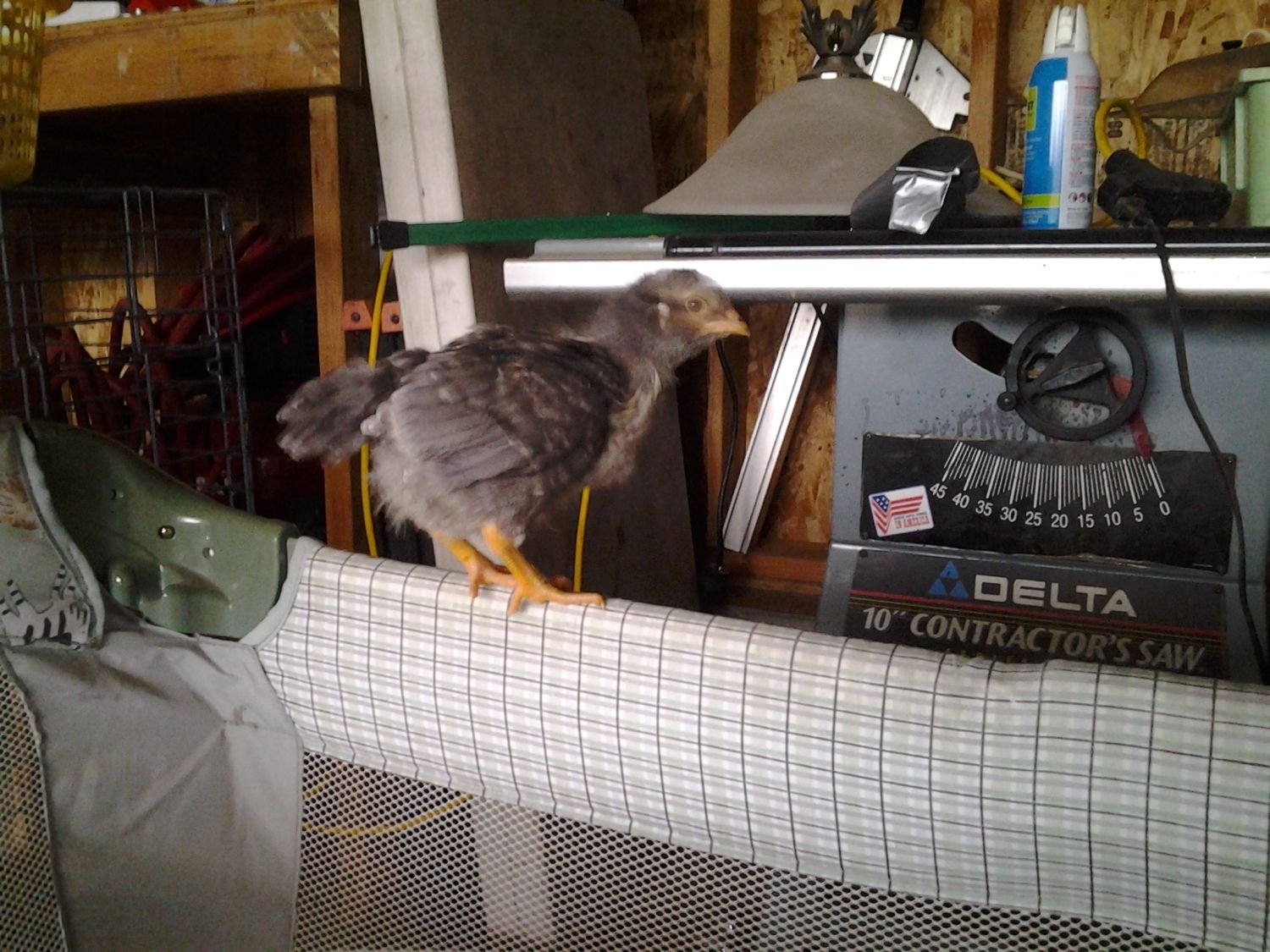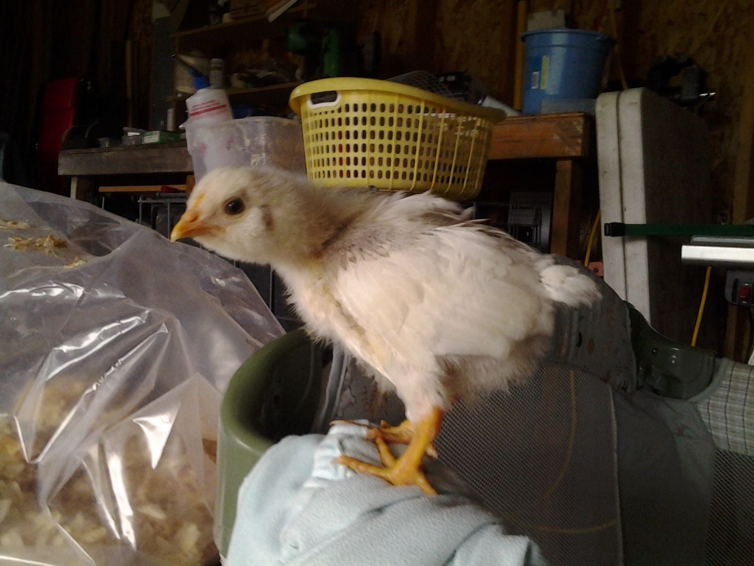 This one is a sib to the grey barred chick - I just liked the expression and how it looks like she's got a basket on her back.