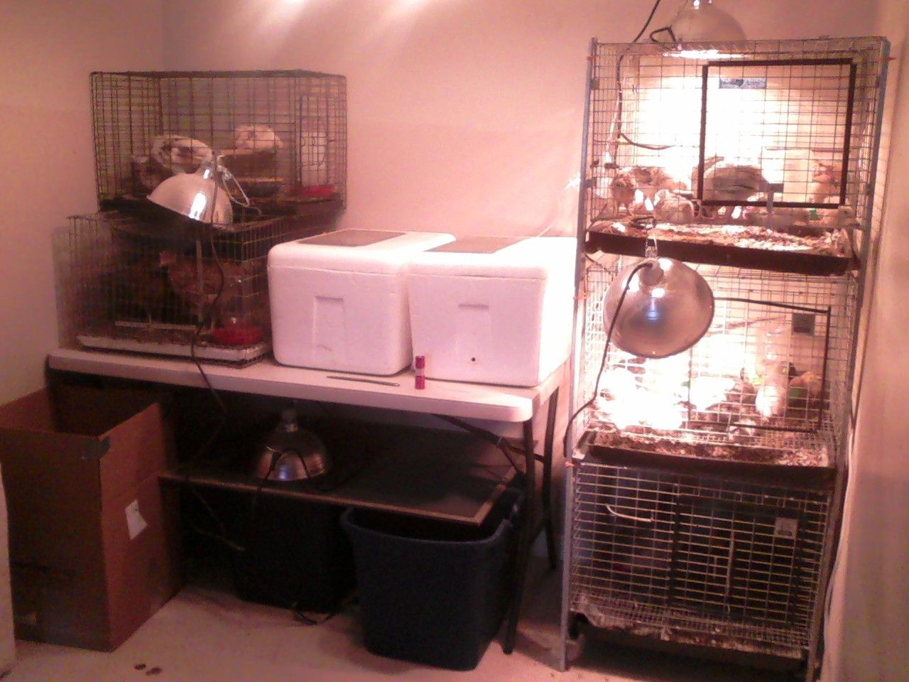 Wall of shame? That's a wall of Fame! And as for that parrot, well my African Grey gets out of her cage many different ways. She then proceeds to let the other parrots out. Gets back in her cage and yells at the others that they are NAUGHTY. It's NAUGHTY NIKI, NAUGHTY LOOIE, NAUGHT PICKLE, NAUGHTY TIMMY! Then she laughs like a psycho, which really sounds like me....shhh, when I come own to put everyone back in. When the baby turkeys were down there she let them out too! She's too smart for my own good.On a happier note! My "chicken addiction" wall of shame:Including thirteen lovely marraduna basque chickies, growing nicely!