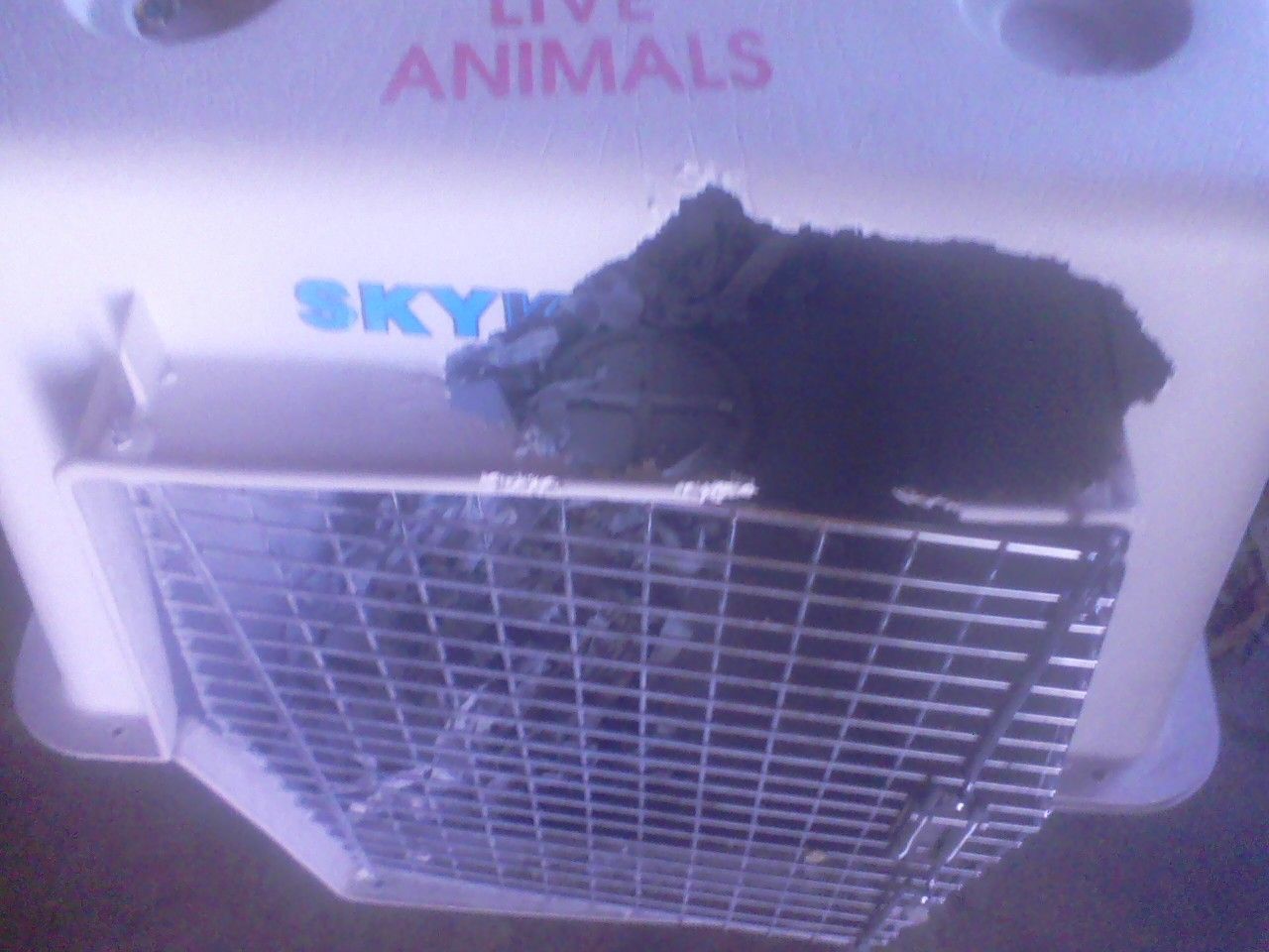 And last but not least -- it was bound to happen. Sooner or later. Yeah, keeping a parrot in a plastic dog crate? Not so workable. Zeke's escape route!