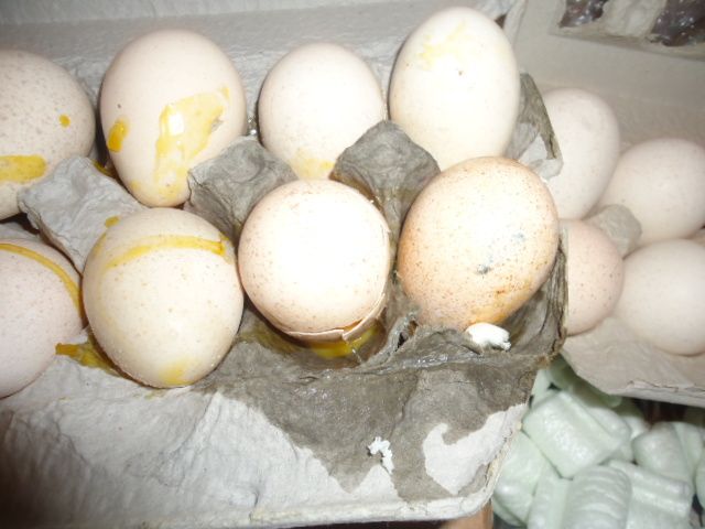 Rest assured I did not ship you duck eggs like that! Wow!Well I am done buying eggs on ebay. I bought 2 dozen turkey eggs on there and when I got them 1 dozen were smashed and broken and leaking all over the other eggs. The eggs were not wrapped they were just in egg cartons and the egg cartons weren't wrapped. they had only bags that were filled with air around the egg cartons. I contacted the seller and they are refusing to resend the ones that broke or even refund me for the broken ones. They didn't send any extra's. Out of one of the eggs they sent 1 was a soft shelled egg that should never have been sent.![]()