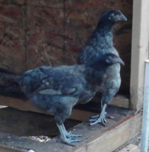 6+ AM's sq black roo over blue Wheaton hen and silver hens