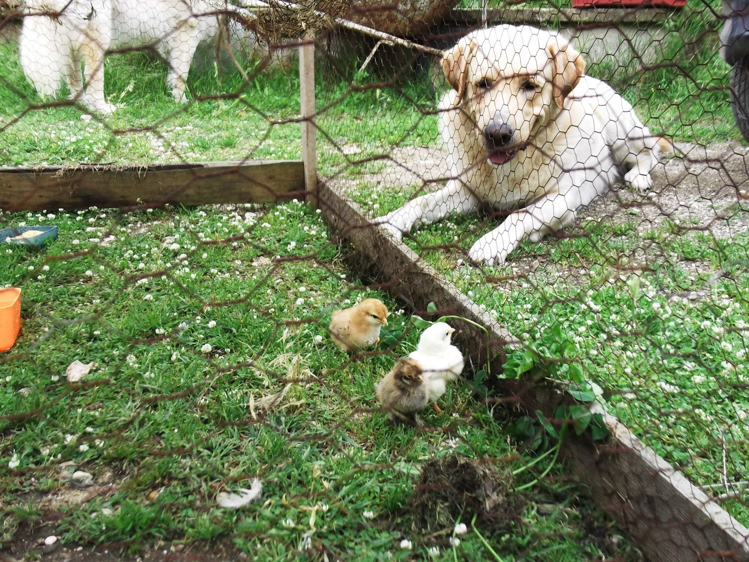 I guess with those pics, I should also mention we have 3 dogs, 1 cat, chickens go where they please (once grown up that is, babies stay in the fenced kindergarten area) and everybody gets along. In fact, the cat is scared of chickens after getting attacked by one of the broody twins! She also attacked two of the dogs, at different times, who weren't really sure what was happening so they just ignored her... (The one with the black spots, Chiocciola, which is from Italian "Chioccia" = broody, though chioccola also means snail and the @ symbol.)