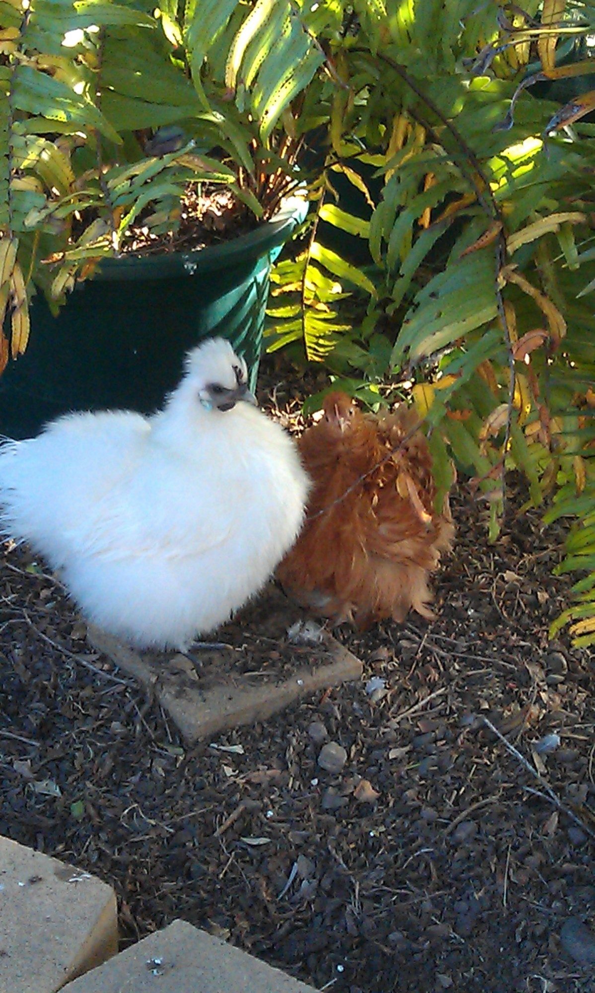 TG, Tina is probably not a good subject if you are looking at Silkies. She only has four toes instead of five, a single comb instead of a walnut and her feet have not feathered; just little feather stumps! lol. Without offending the lady I bought the eggs off (if she reads this), a Silkie breeder has advised that she looks like a Silkie but pet quality only. That does not phase me one little bit, I still love her