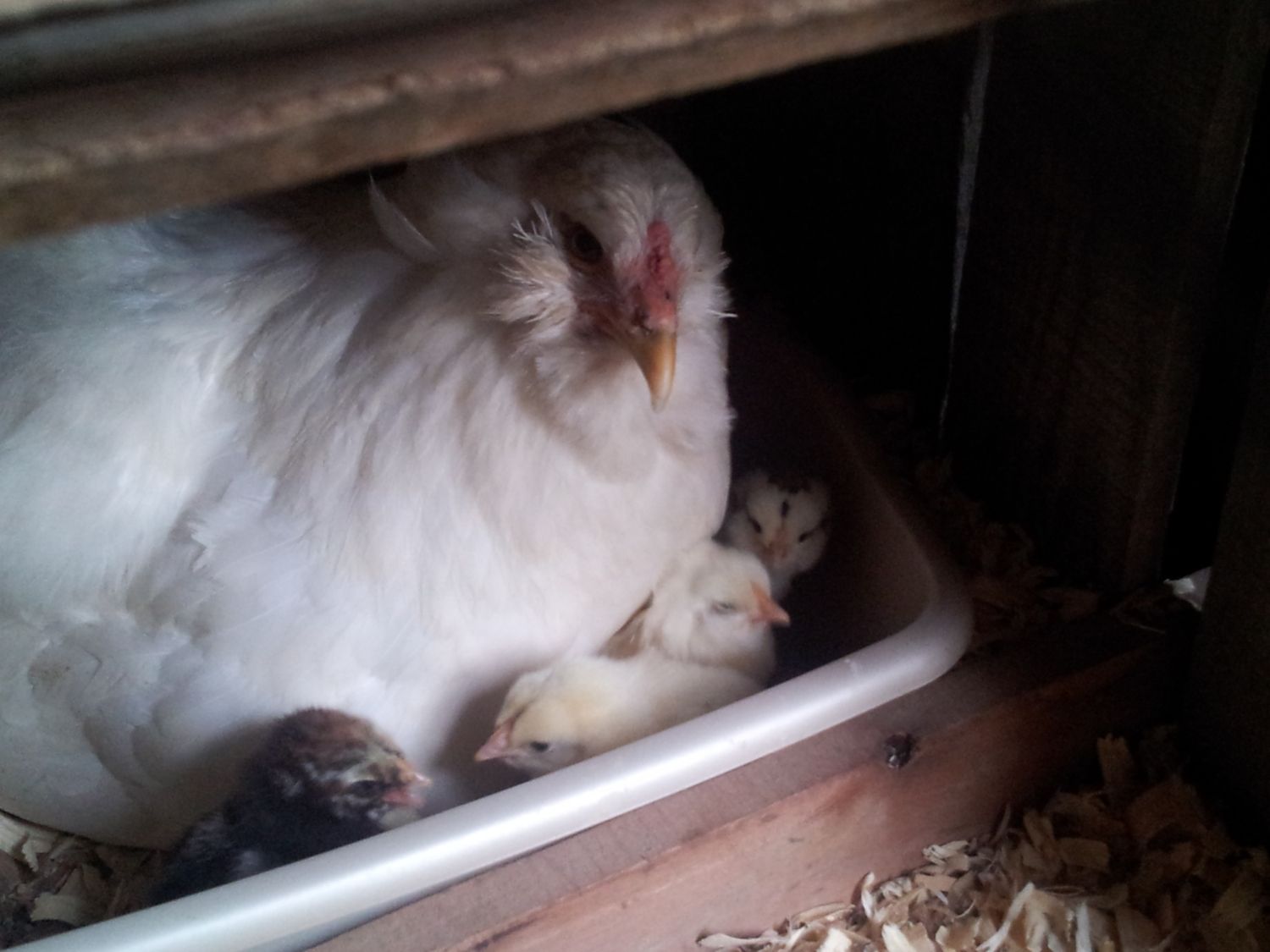 A couple developments here on the homestead. Momma and babies are doing great. Wow, what a difference between broody babies and those raised in the house! So much more alert and not sluggish at all! Quiet too, no chirping because they are hot, cold, hungry, thirsty. Mom does it all!!