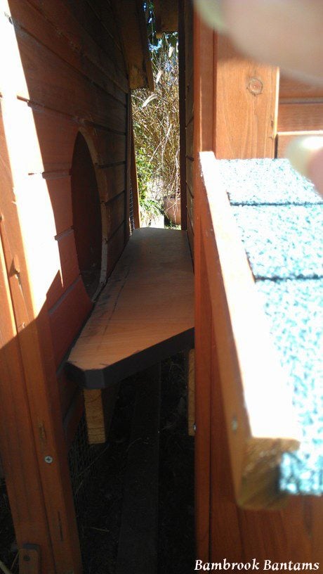 This is Plan B, a 'sky walk' between the two coops with the holes lined up: