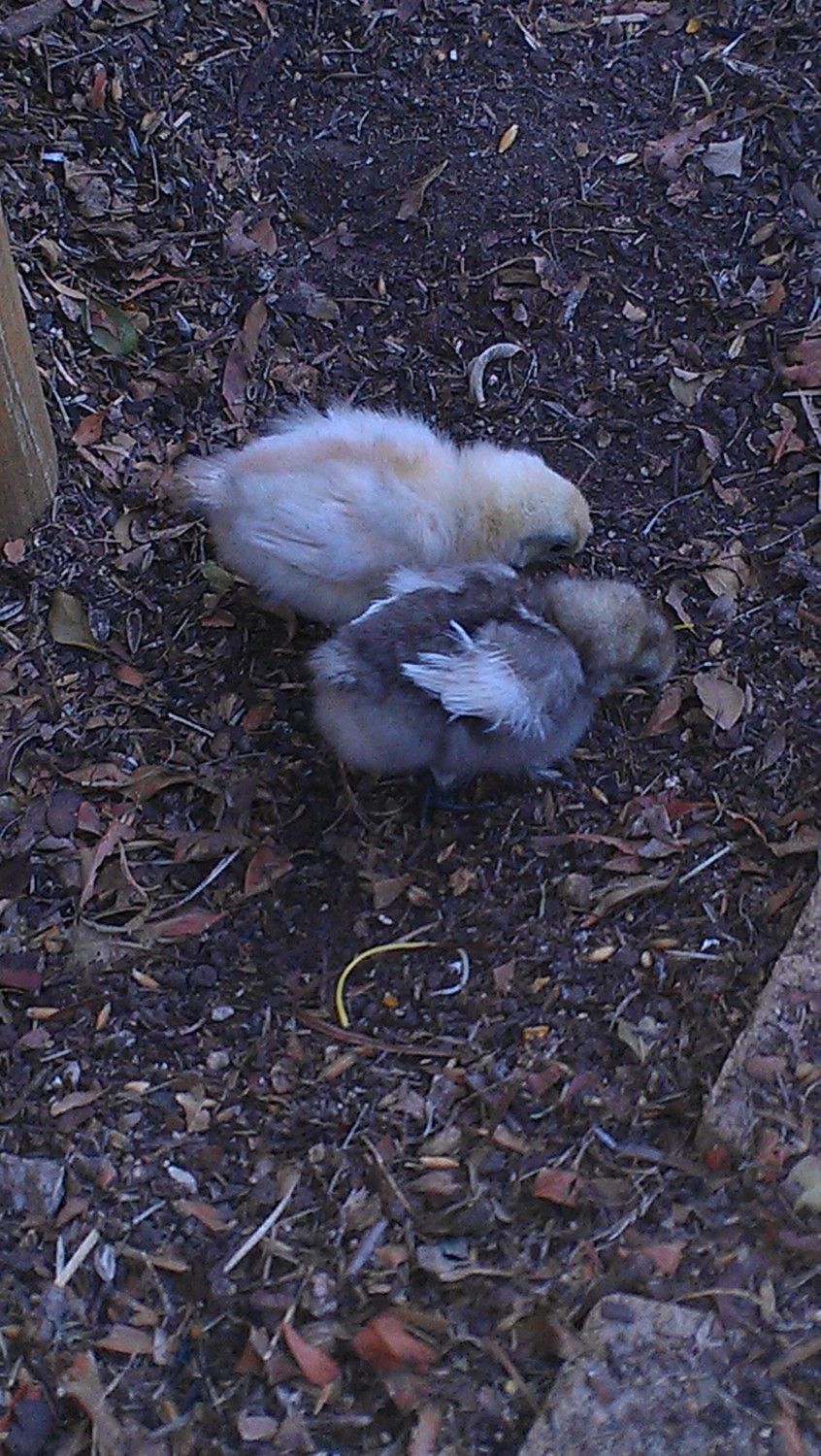 Tee hee thank you Liz; they are actually fuzzing up. I got such a shock when I got home from work, they had grown heaps!! Research has led me to believe that it is too early to know what colour they are going to be; apparently Silkies can start off one colour as a chick and then go the total opposite; apparently your only guarantee is that blacks stay black.