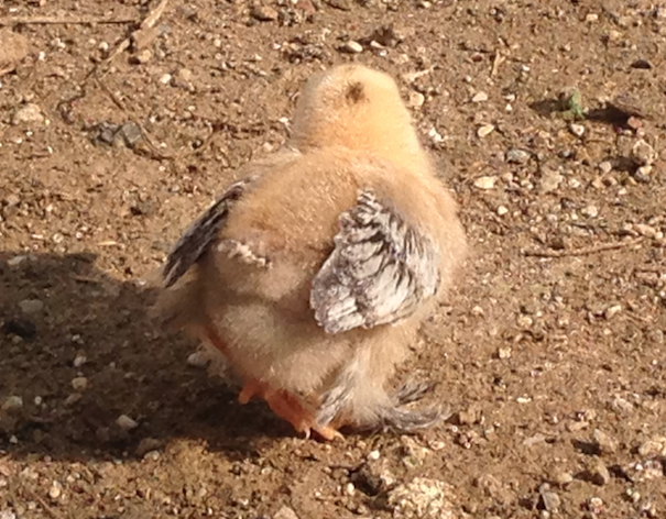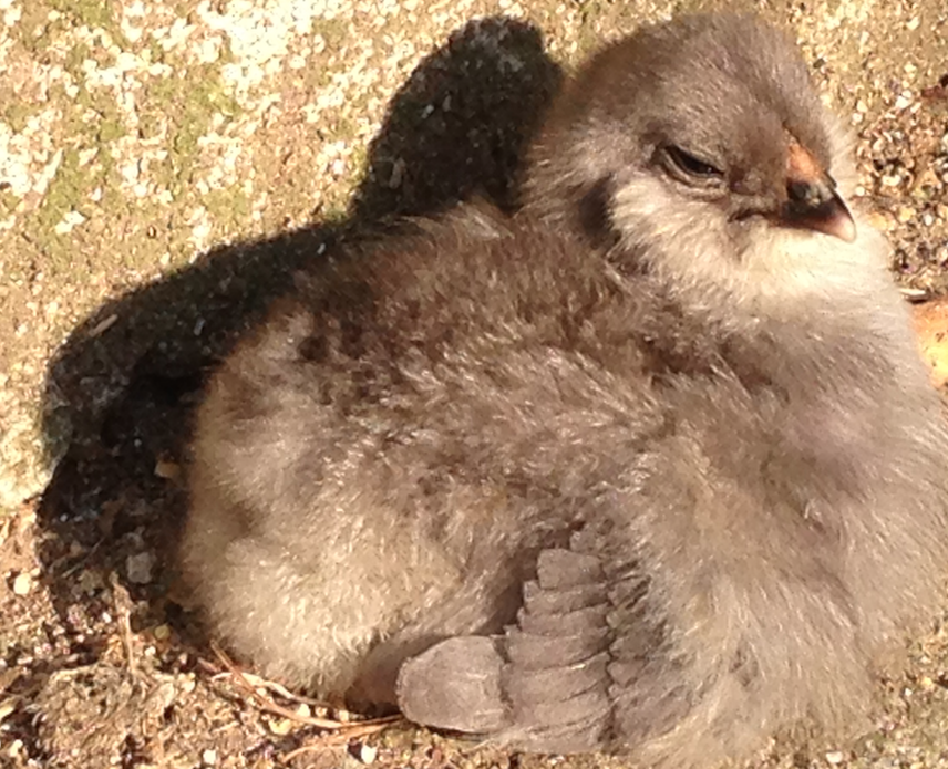 Mine seem smaller in size (wings are about the same), but maybe it's the comparison to moms that makes me think that, since Pallina is a bantam Brahma, which is still bigger than most bantams.