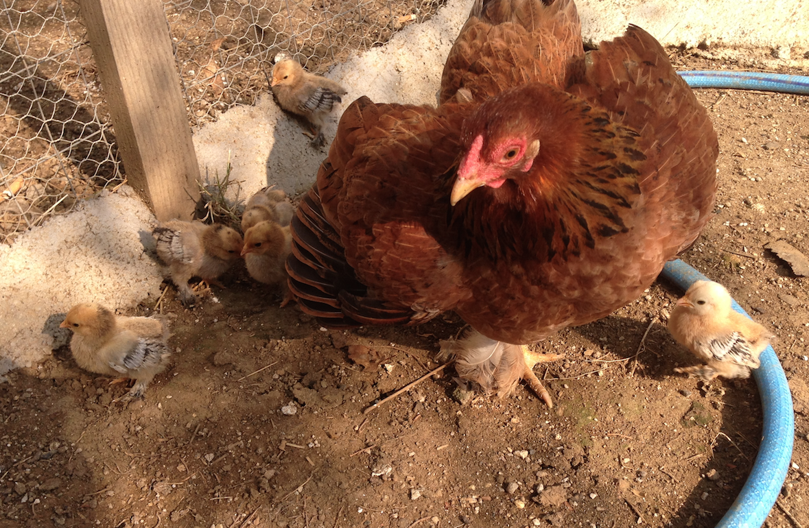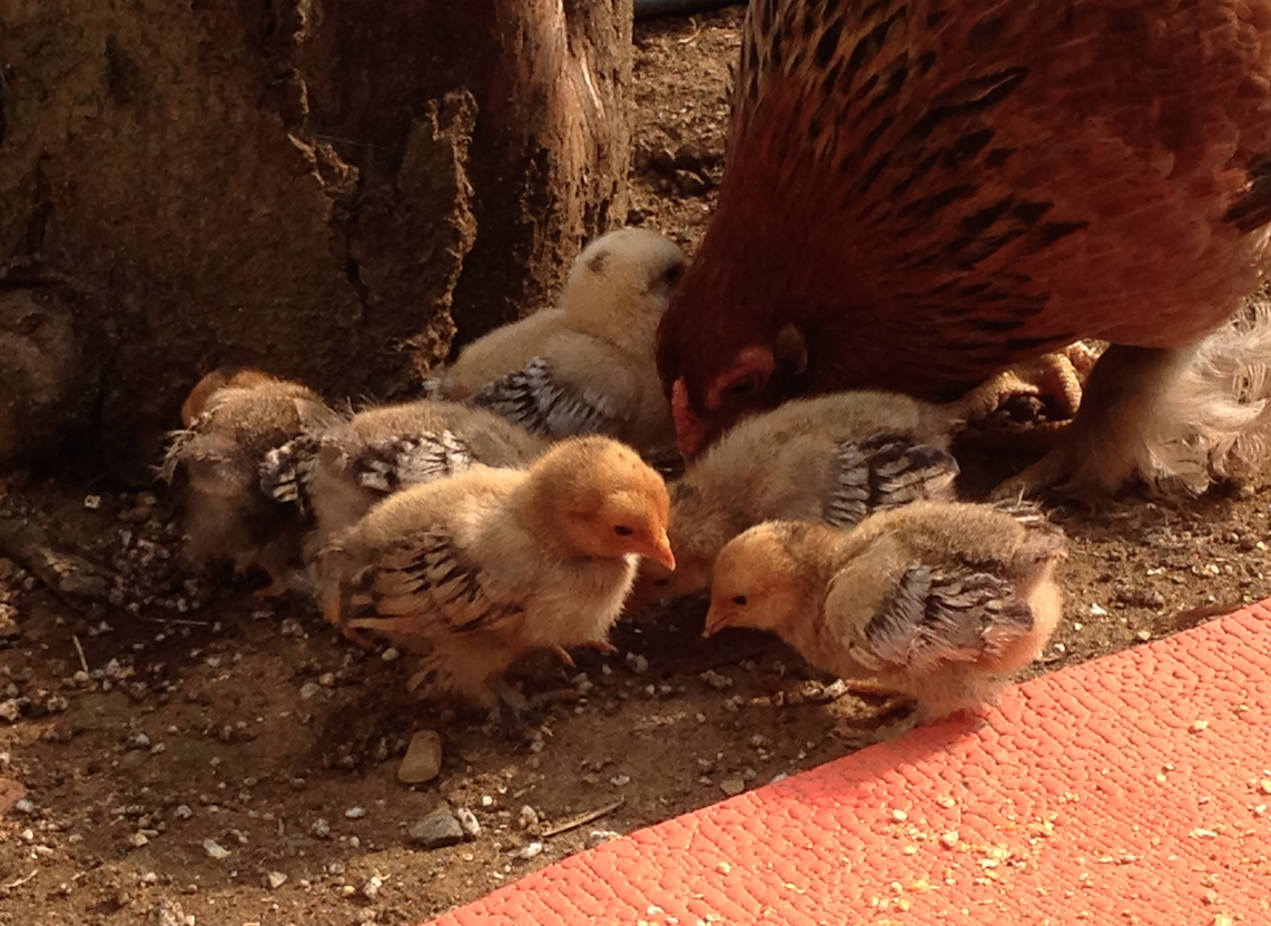 Well the chicks will be a week old tomorrow and the broodies STILL aren't taking them outside! I think they are playing it extra safe.