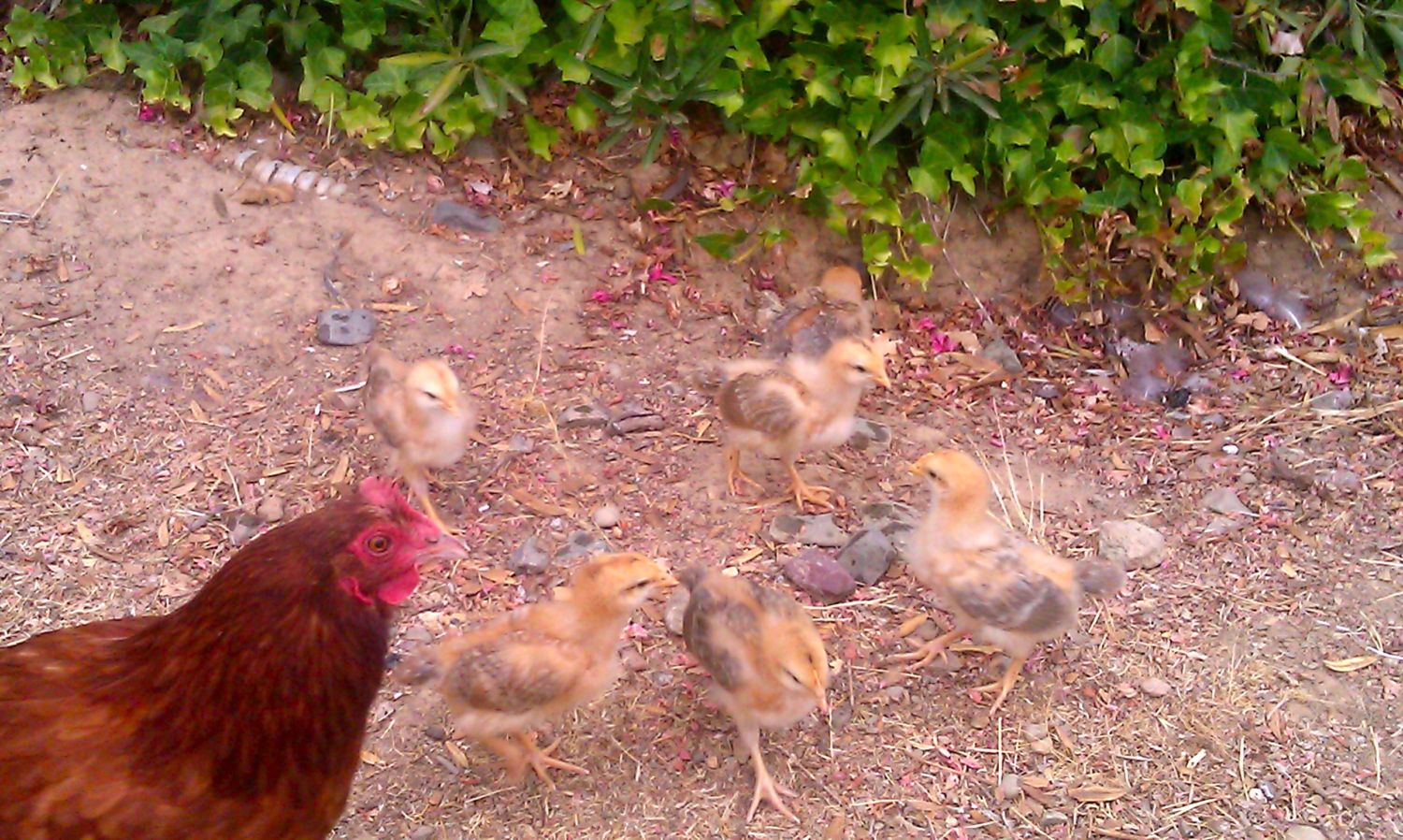 Here is Norma with her second clutch. These babies are so well camouflaged it is hard to pick them out and of course there are blurs from the ones that wont stand still.