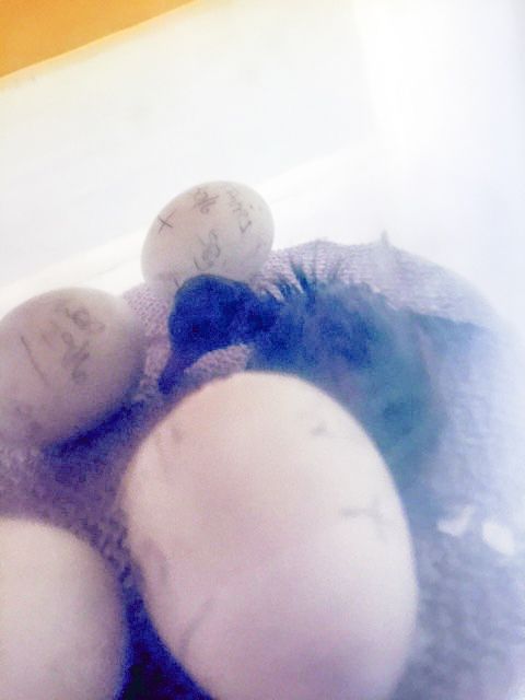 No more eggs pipping so far, but the first two are more obvious now... but now I have peeping! I had to add water, and I heard them from inside the shell! I can't believe it... it is truly a miracle... not because they are beginning to hatch when I feared they were all lost, but because it's a true miracle of life. I can't explain how I feel.