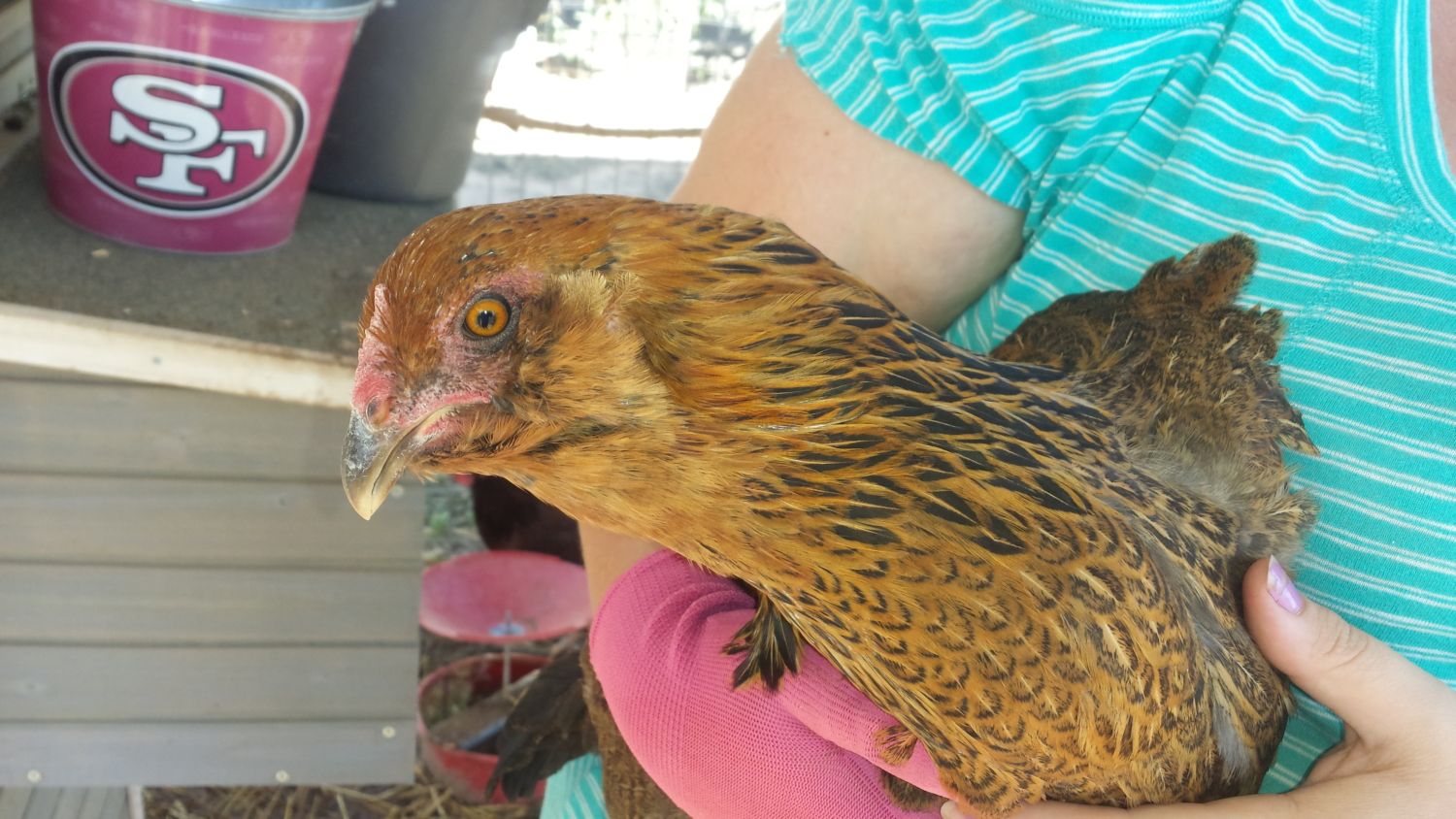 This is a full body shot of Roo and Eggly the once sick/dying 156 buck chicken photo-bombing Roo (these gals love selfies too)