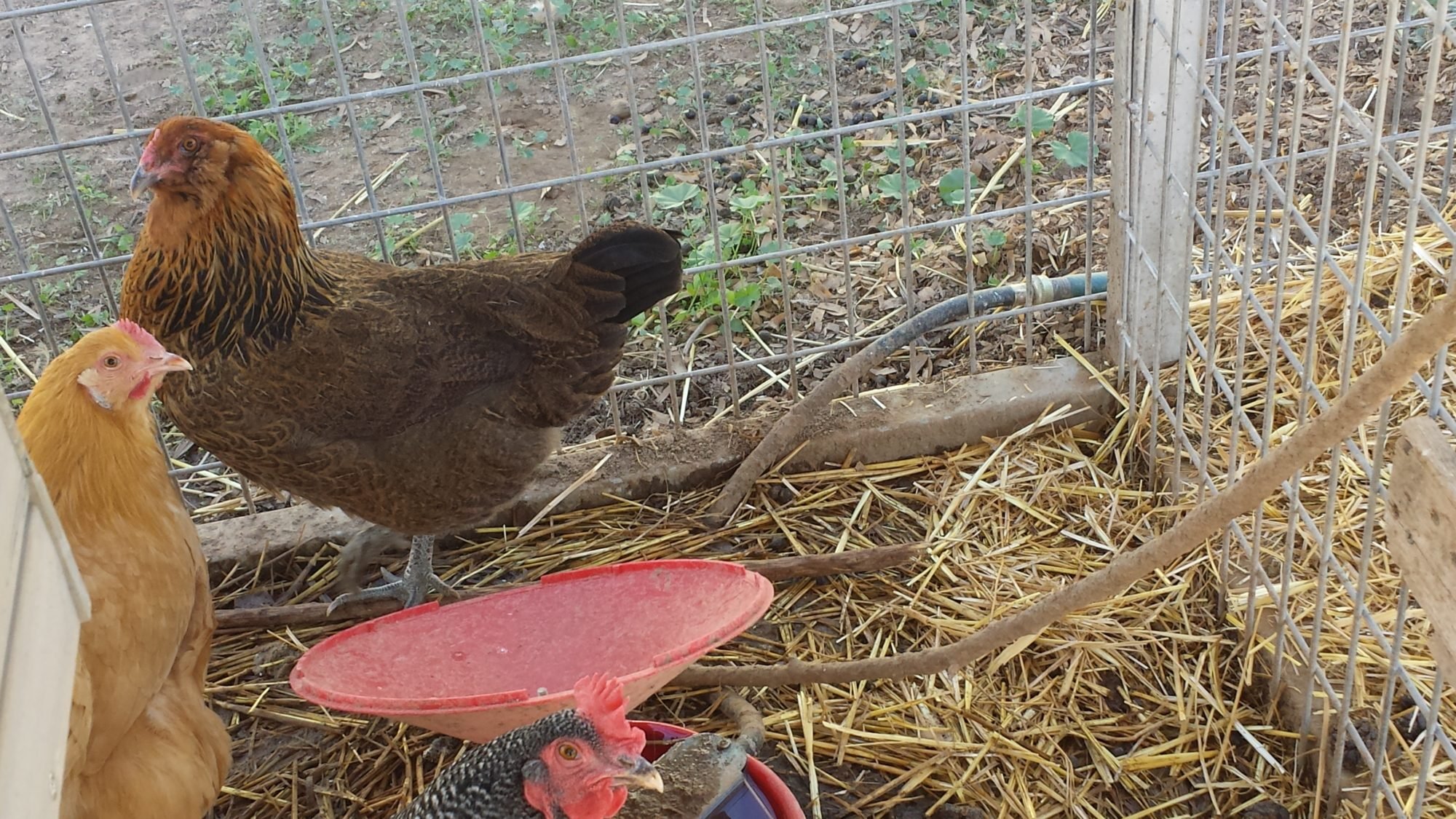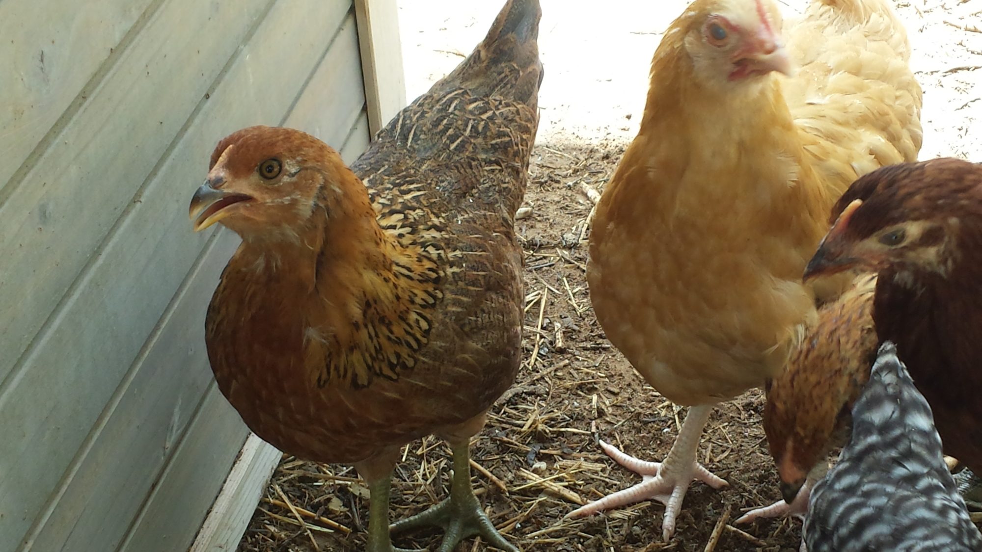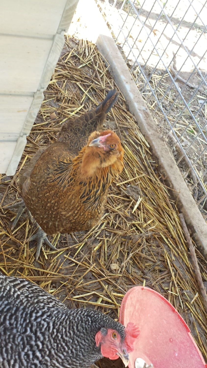AN two mystery chickens that were sold and labeled as ameraucana's.