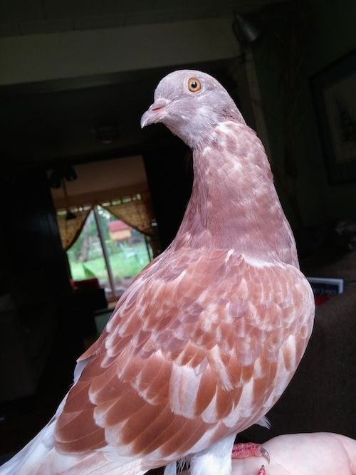 This morning a hawk swooped in on one of my hens. I was able to pull it off before it killed her (I hope... no obvious injuries, but she is a little droopy), but in the melee, my pet pigeon got scared and took off. I've raised her since finding her as a squab in my yard this spring, so she is super tame and seemed to have no inclination to leave the yard before now (she loves hanging out with the chickens).