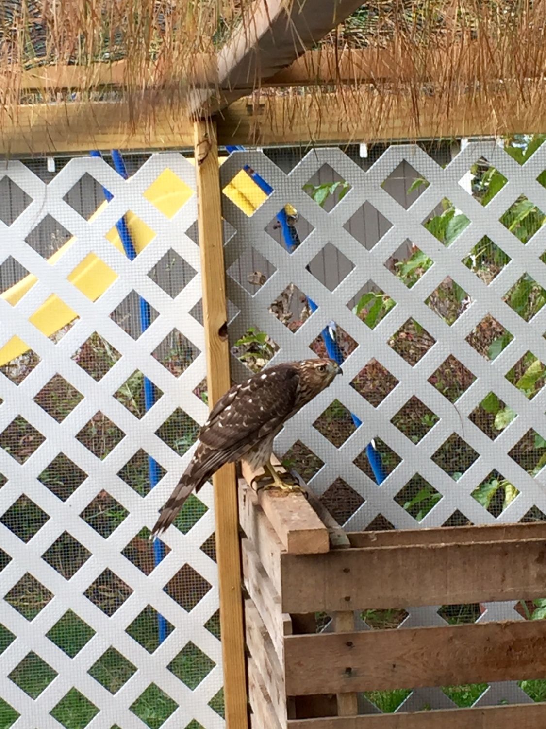 SierraJuliet, he's probably just becoming desperate. I don't know where you live but where I am small prey are scarce because of the dry weather. My mom told me about leaving peanuts or peanut butter on a stump to attract mice to feed the hawk. If he has access to easier mice he should leave your chickens alone.