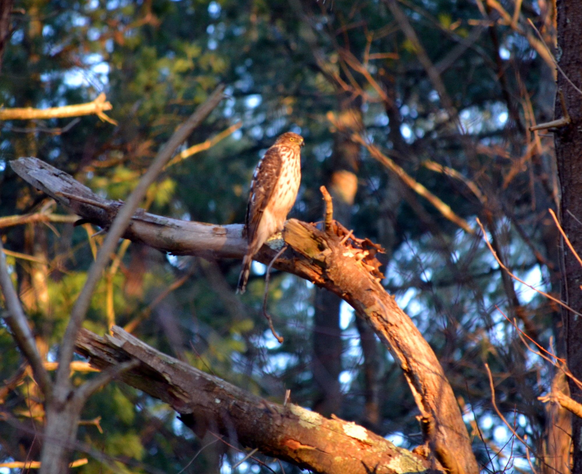 We have since then lost two chickens. One vanished out of a small outdoor pen during the day (a bantam). the pen was directly under low hanging branches...so I thought they would be safe. I made the mistake of not running fishing line over it. We lost another light weight chicken while they were free ranging inside the woods in the middle of the day.....while we were outside in the yard. We believe this would be from a coopers hawk. Ive been told they are good at hunting in the woods.
