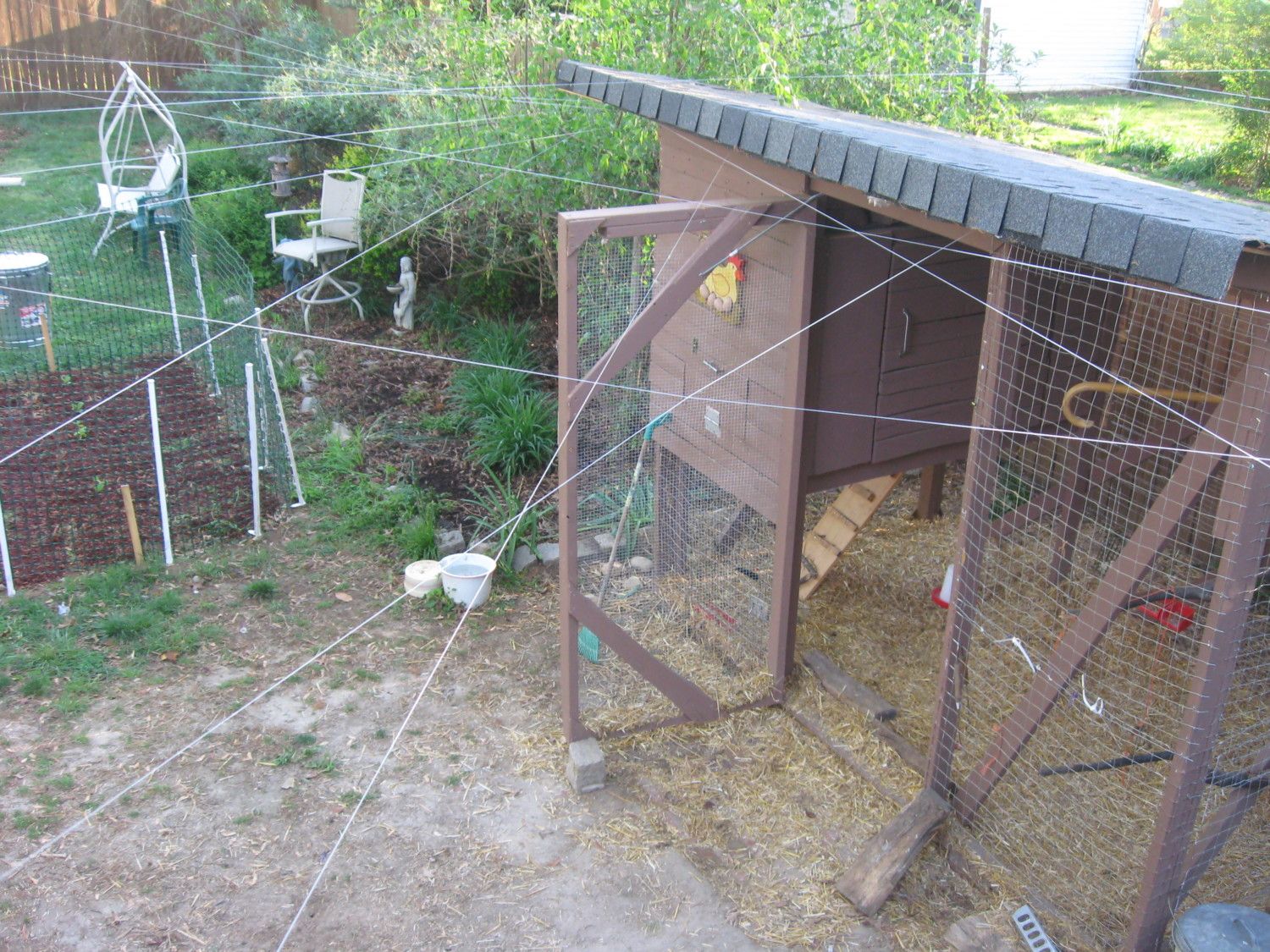 Don't be fooled. This one killed a full size EE hen three weeks ago with the roo right there. It attacked our bantam also but she hunkered down in the briar and the hawk was scared off before she was finished off. She escaped with a huge gash on her back. They are all in lock down until the foliage comes in and breeding season is over....they are not happy but it beats the alternative.