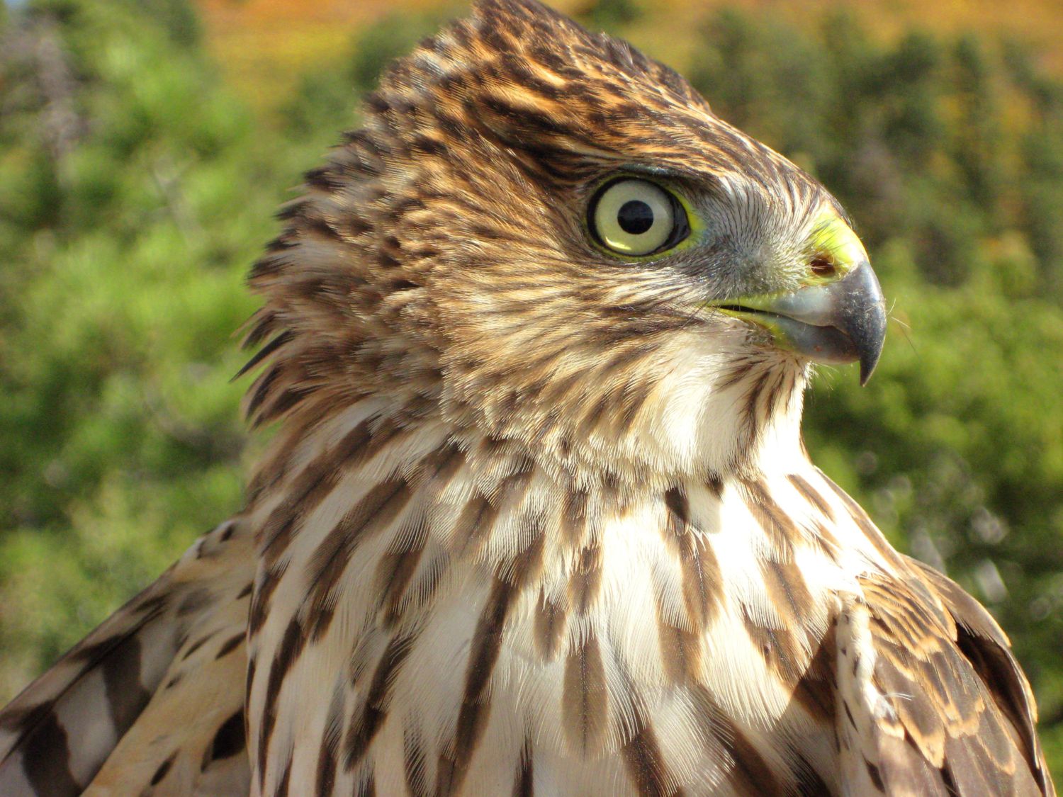 Featherz, your hawk will target chickens. It is an accipiter hawk of some sort, Coopers or goshawk I can not tell, and it will go after chickens. If former, then my games roosters can and do repell it; if goshawk, then I pen birds up or make certain dog is out there with flock.