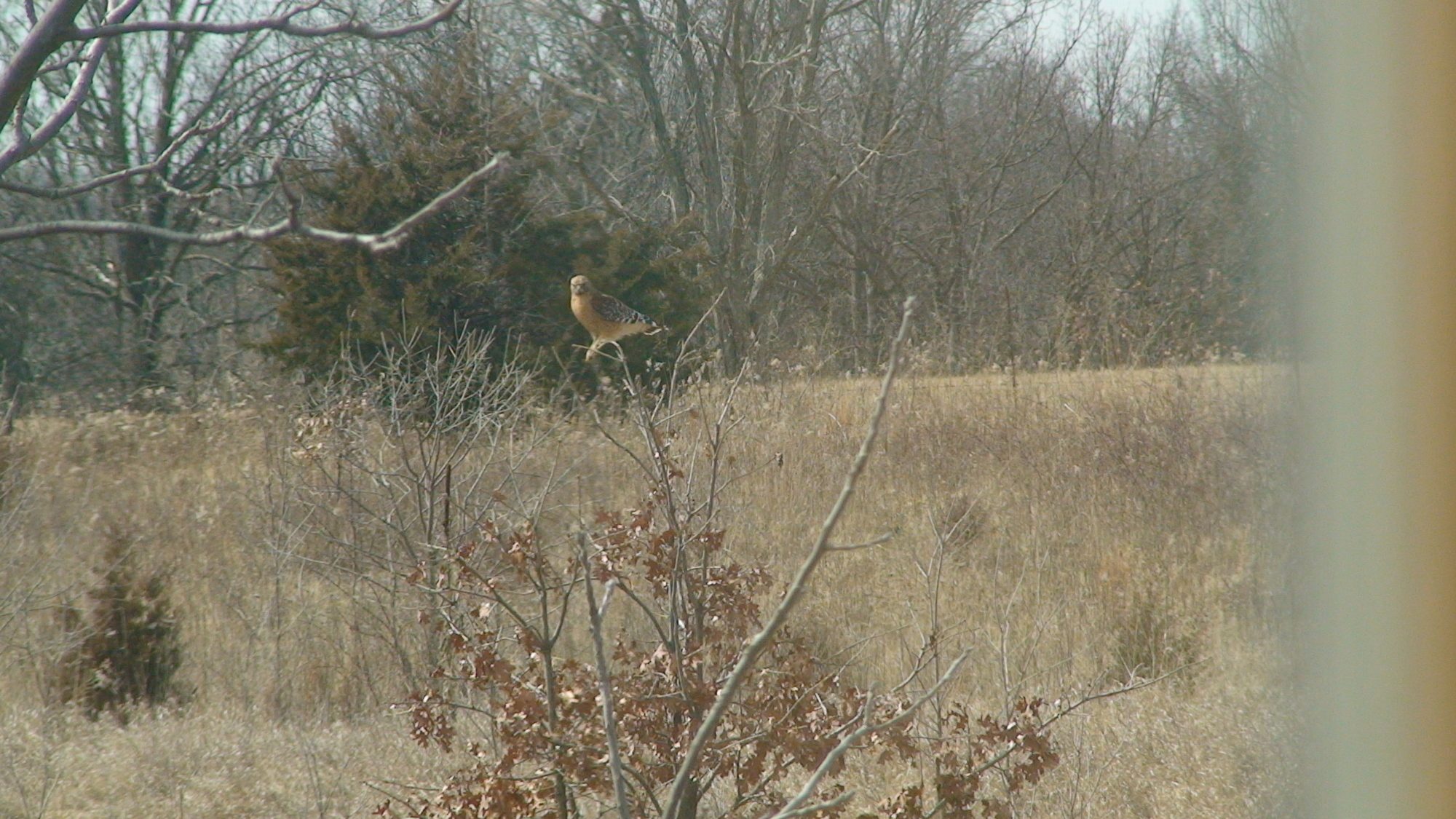 Red-tails are pretty much done from now until next December as a threat, apparently in part do to interactions with a smaller and generally subordinate hawk species, namely the red-shouldered hawk. Resident red-shouldered hawk pair are setting up breeding territory that is centered on my patch. They are not a threat to even my juveniles but they mob red-tails when they visit. The mobbing is adequate to keep red-tails mind out of game. Another anti-hawk system is dog can easily distinguish hawks from chickens and when chickens start getting riled up, then dog is there very quickly standing on his hind legs looking up at hawk above him. If hawk were to tangle with chicken on ground long enough for dog to get there, Scoob (dog) would at least love him to death. Same dog will also chase after Coopers hawk flying barely over flocks head even though chickens give no alarm is given. Dog has only been effective against predators since late last summer owing to youth.