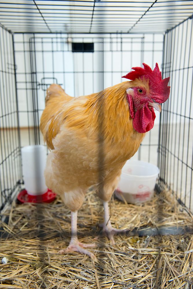 My beautiful rooster, Ivan incarcerated for attacking my favorite hen, Madge! He went with a friend who has an older flock who will try to incorporate him. I hope he does well. I will miss him.