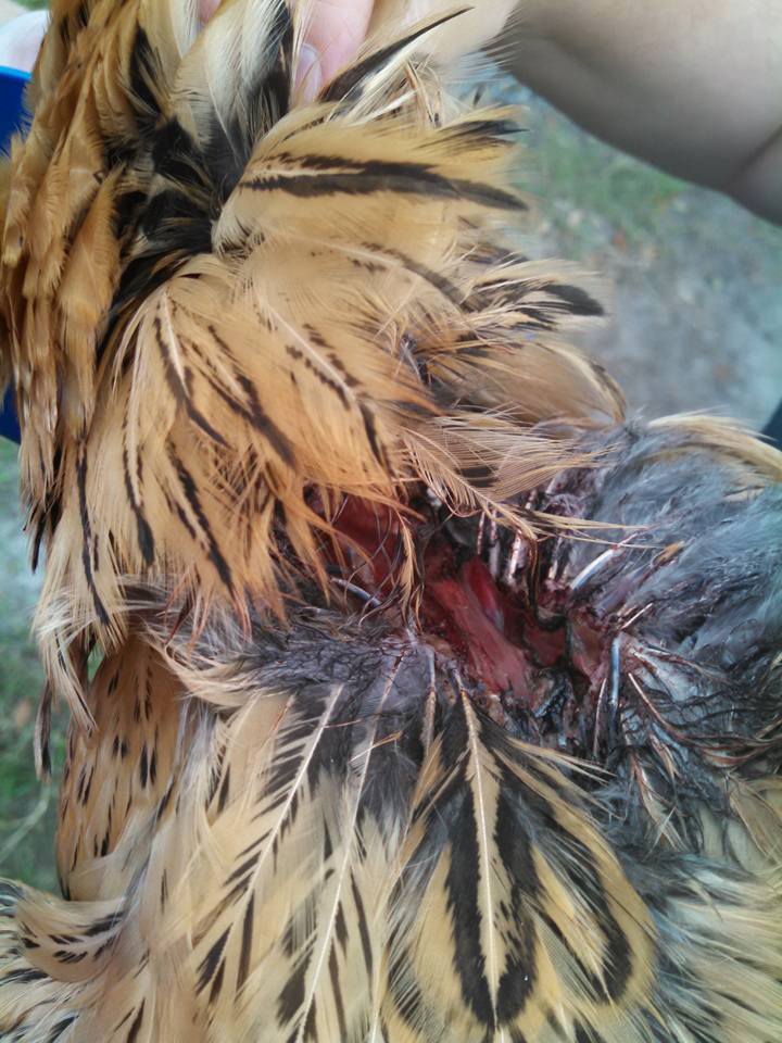 I have a 15 week old EE pullet that was attacked by a fox last week. The fox pulled all the skin and feathers off her neck.