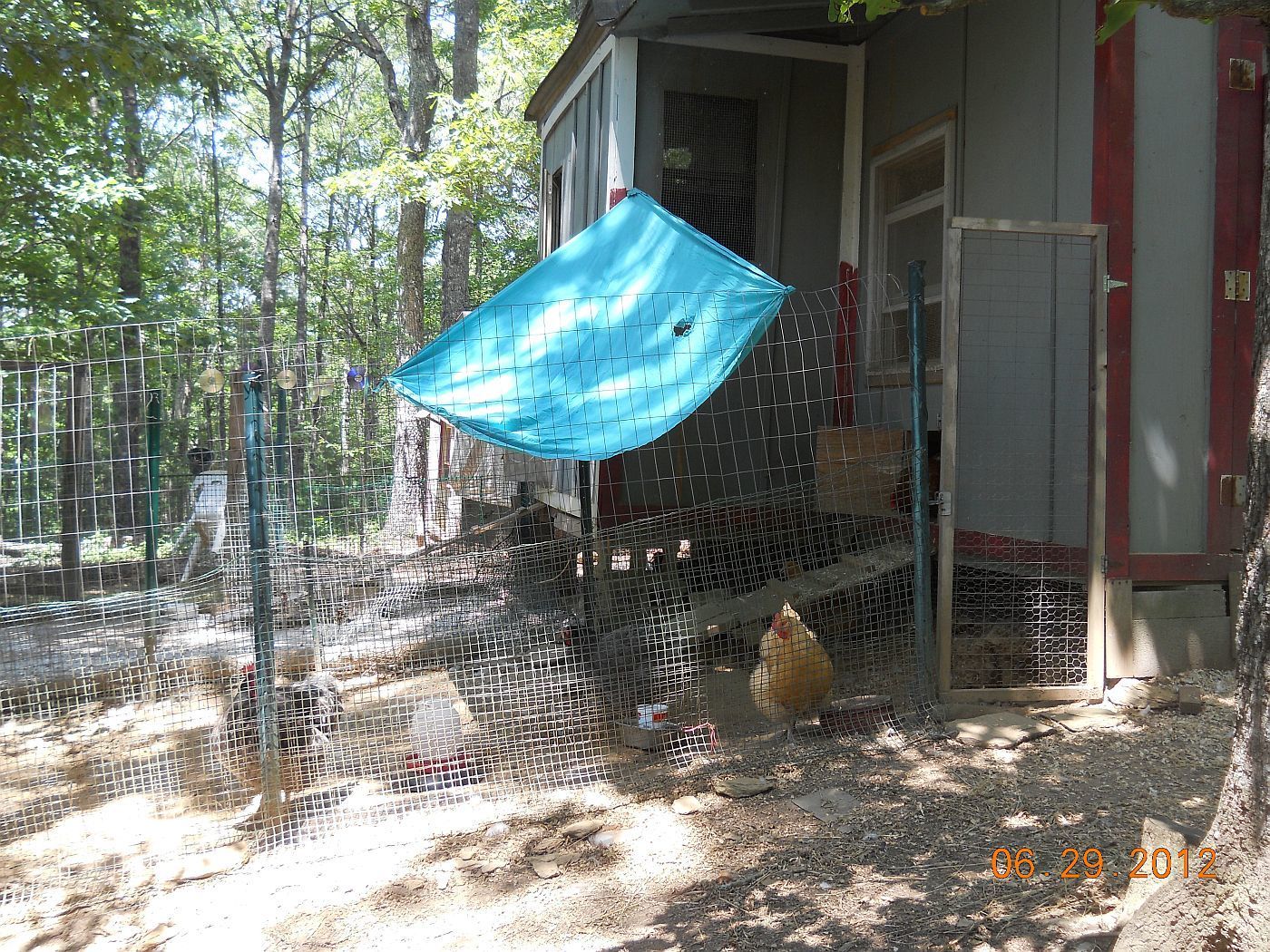 And my young three month old Welsummer and my new Coro hen I just bought and had her in an isolated pen by herself under the shaded tree.