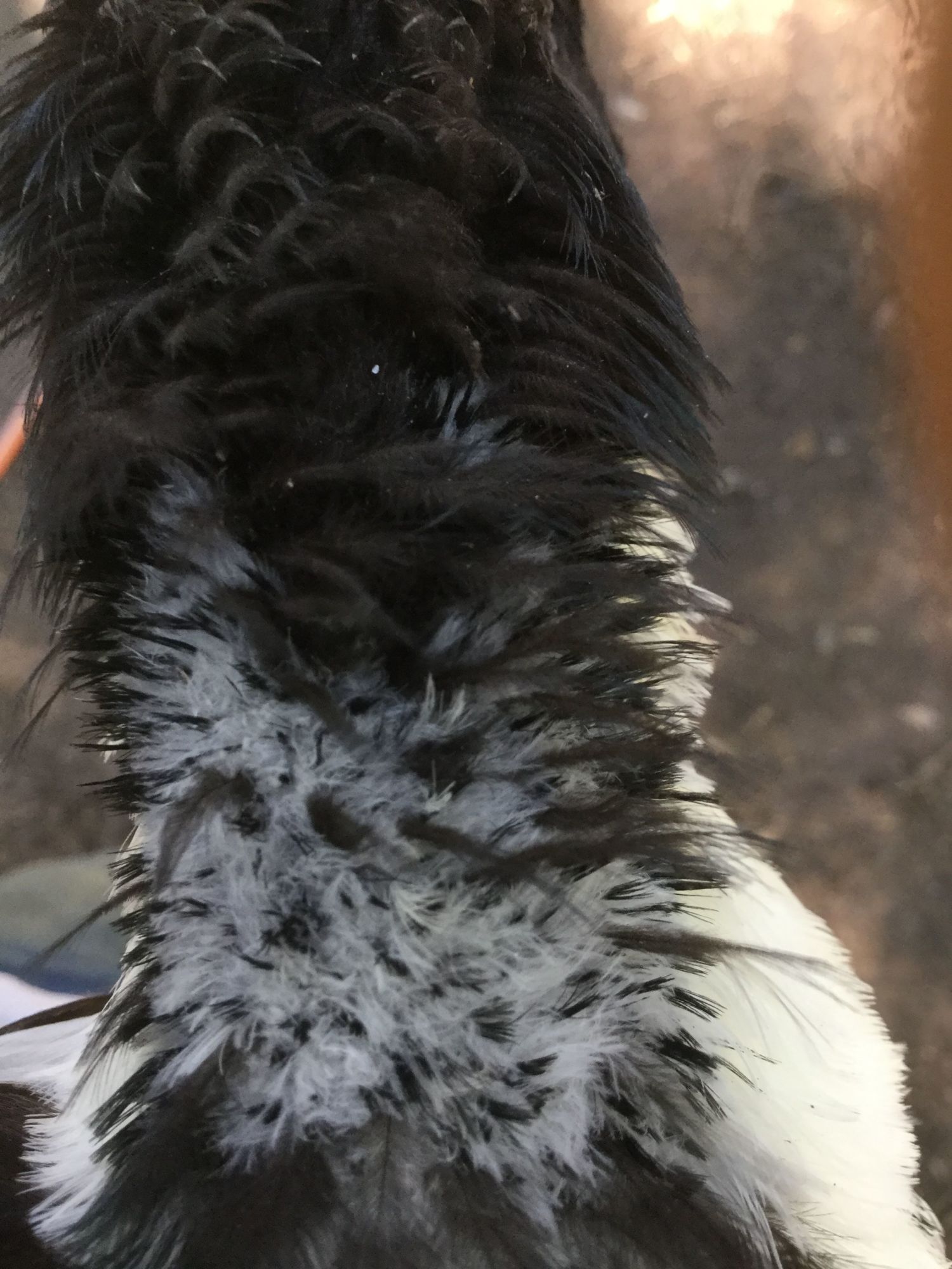 Three month old Swede Pekin cross. I walked out this morning and it looked like some one took a razor to my drakes necks. I guess they're getting their green.
