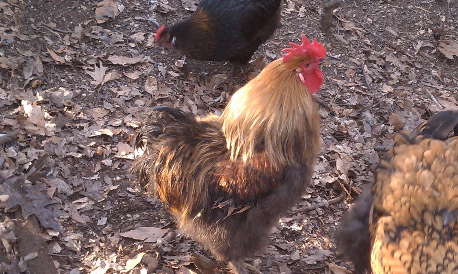 the bigger older rooster does have excellent growth for his age, not sure if that is not a factor of his dominance, but if so it all works well for the breed.