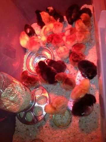 My new babies came in at 4:30 this morning. My post office is a little too efficient! But they are cute. Had a little snafu with the waterer, and ran down to the feed store to open it with them, got a replacement or two and we are off. I have 11 that are a little older than these 27, and now I am up to my neck in poultry! Is this what they mean by chicken math??? All these packing peanuts and lagniappe!