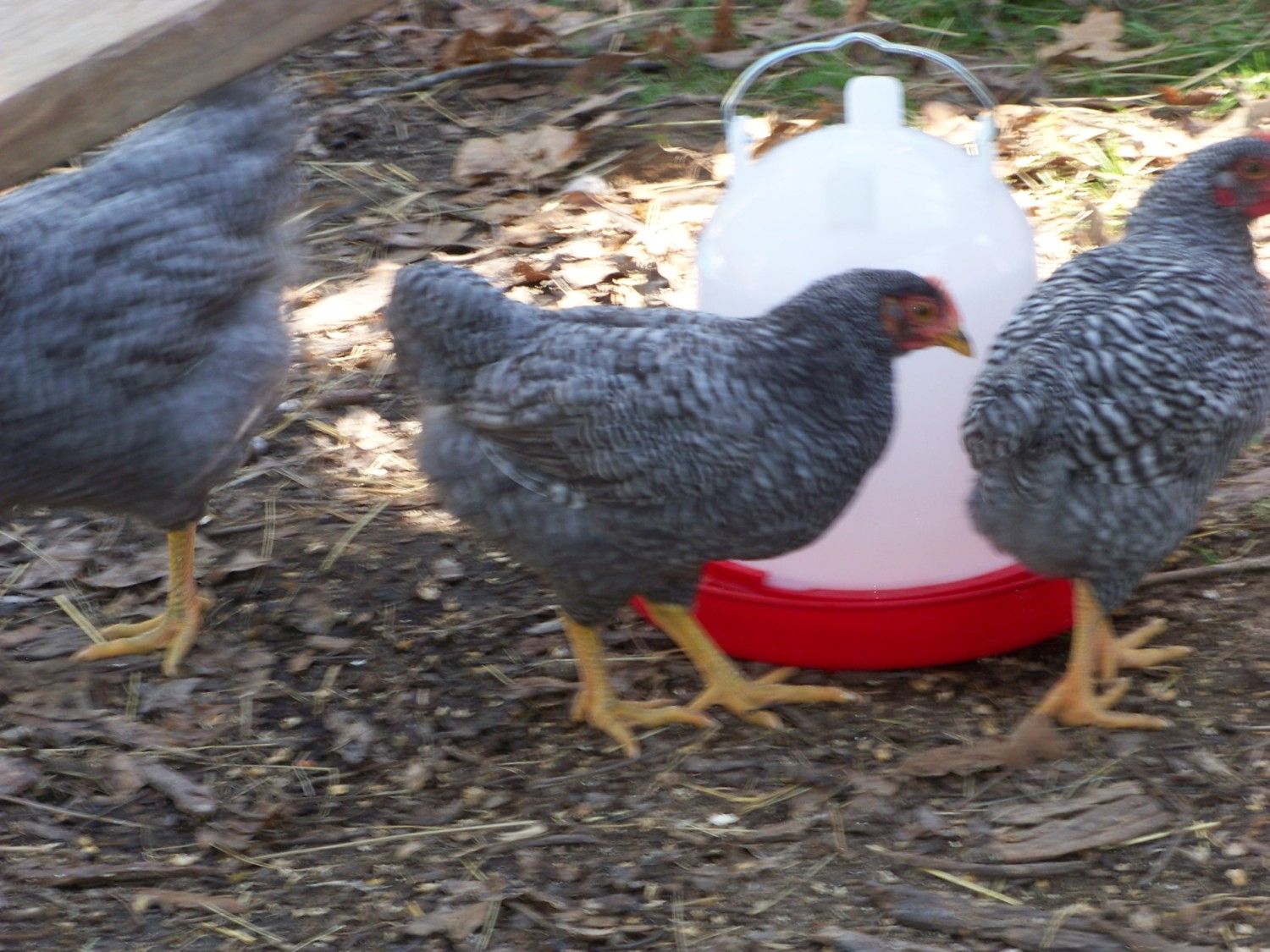 The birds are doing good, we've been having really good weather and they have been getting to free range in a couple of small groups all day most everyday and love it.