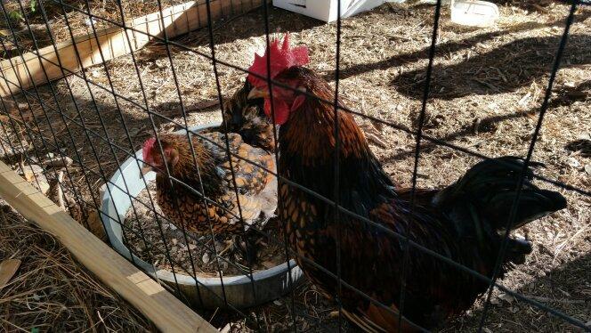 We have 4 chickens: 1 male gold laced cochin, cochin hen, americauna hen, and a silver laced Wyandotte. Sorry if I butchered the spelling on those names, but I only figured out a couple weeks ago that "cochin" was pronounced "ko-shin" and not "cockins" lol!