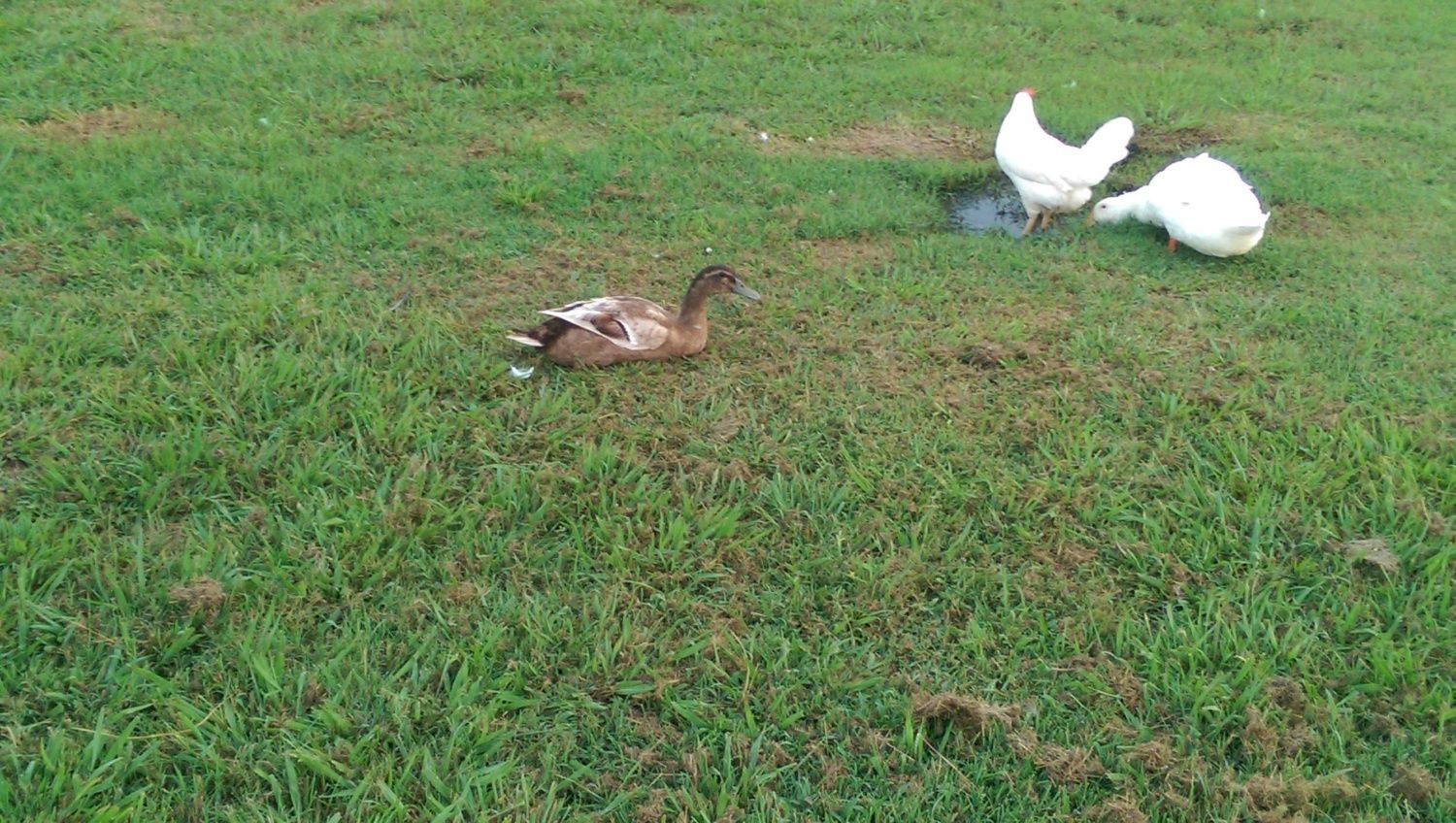 I'm also the keeper of two rescued ducks. Our white male Pekin is a dog attack survivor and is now my 8 yo daughter's pet (though he's not the cuddly type). She calls him No-no for some reason. I tried to get her to name him Howard, but she refused. She nursed him through a broken leg in the middle of last winter and he's now fully healthy without a limp. The other duck was actually found at my office laying by my car and a co-worker alerted me to her. She was very gentle and in obvious pain due to a piece of fishing line that had been wrapped around her leg so deeply that the leg had swelled to twice the size of how it should have been and the webbing in her foot was black. A local vet was kind enough to remove the line, but told me he wasn't sure she'd keep the leg. She lost the webbing, but kept the leg and is still limping. HER name is Howard. I got my way on that one. She and No-no have bonded and are absolutely infatuated with each other.