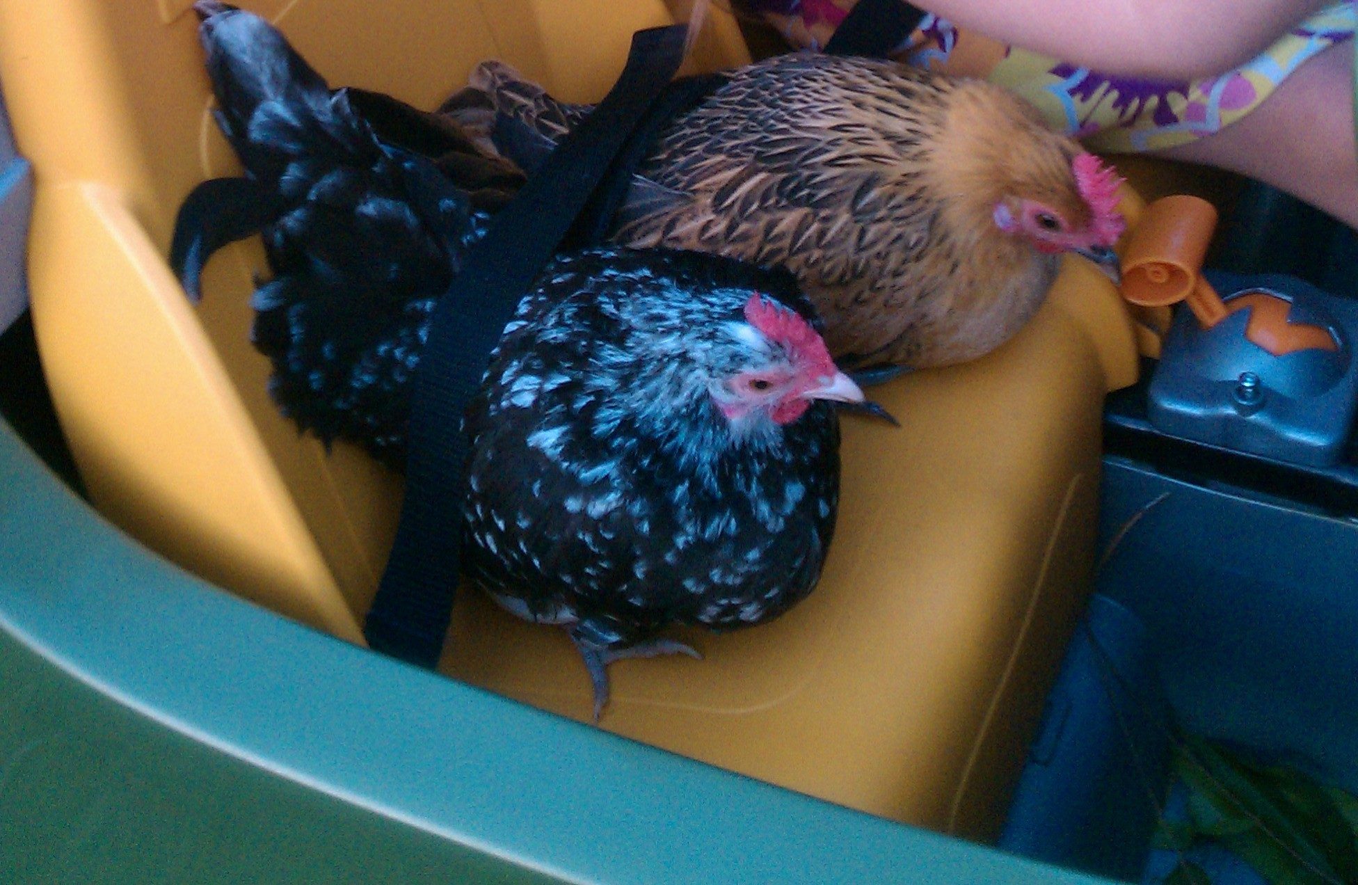 Sorry to hear that your little girl is having a hard time. I hate it when they are so little and you can't fix their tears. I have a rooster that is black and has white feathers over its back. His name is Norman and you are welcome to him. He's small but not a tiny bantam. His comb is purple. I don't have a picture of him tonight but can get one for you in the morning. I live in NY though.