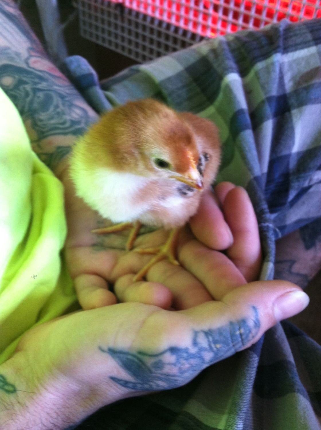 It was a couple days old at most so we bought two baby chicks to keep it company.