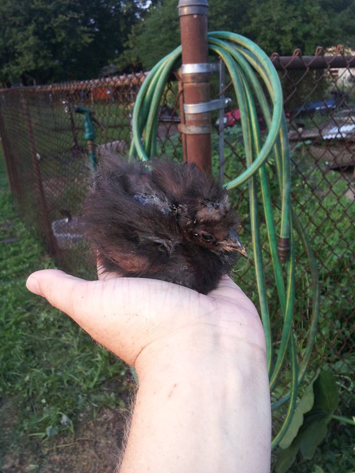 My Poor Poor pathetic little "Sly".... it is/was literally 1/2 the size of the other silkies and it was being picked on..... I said I didnt care if it was a boy or girl that I wanted it (just so i could take it home and spoil it and not let this poor chick get bullied. I brought another from the same group home... but it is camera shy.