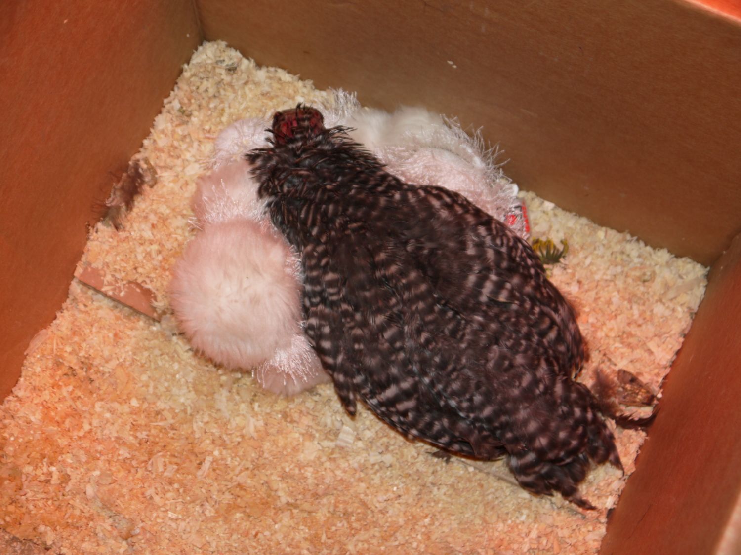 I took the other three chicks out of the chicken coop and put them back in a box in our basement. Now I'm not sure how long to keep them there before puting them back into the coop with the older birds and how to keep them safe. Any suggestions?