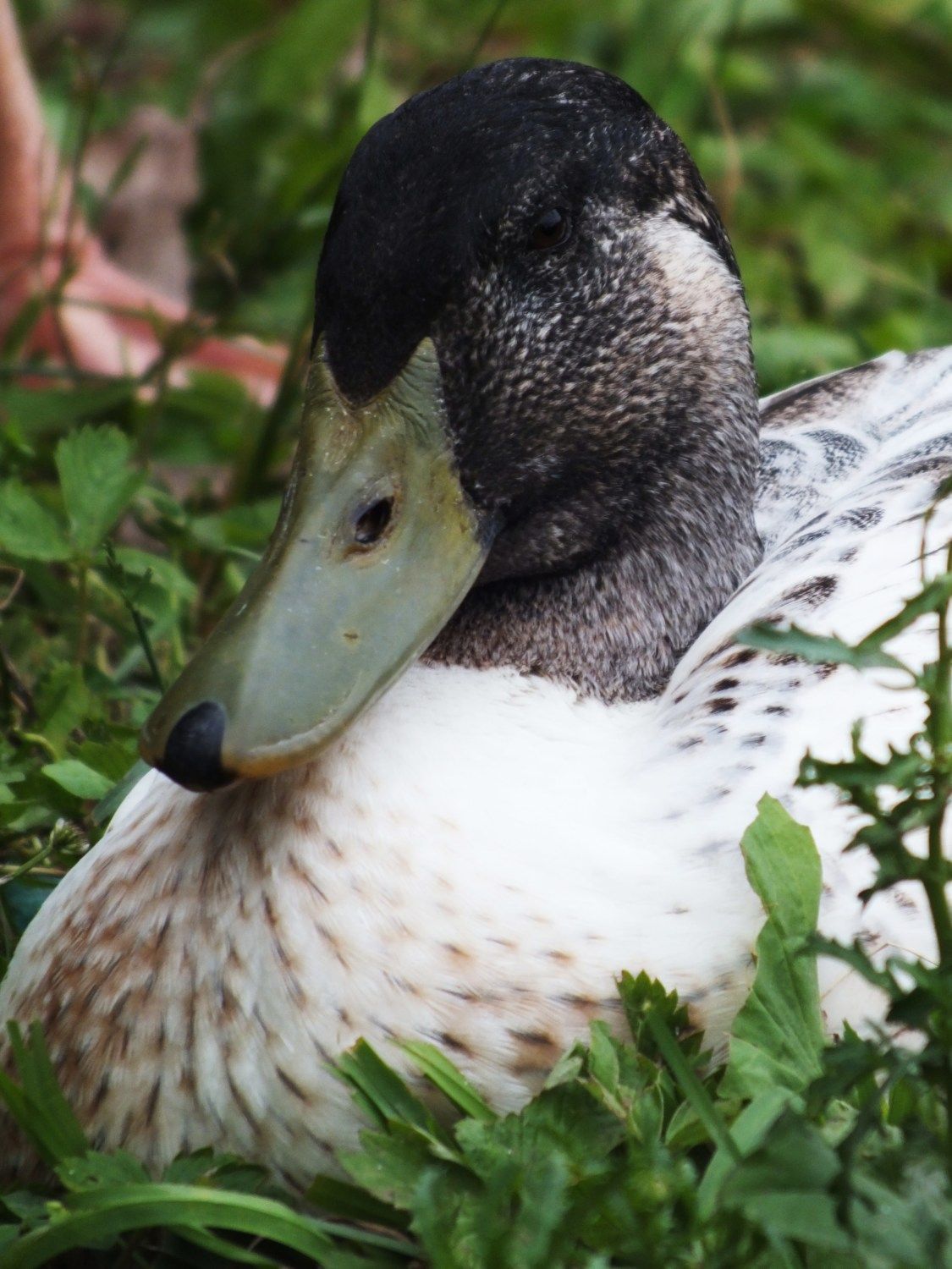 The Little Mallard that was in the pool is now all feathered out and getting along with all the other ducks. Goes right in the duck enclosure with the rest of them at night and see itself as part of the flock. By the way does anyone have any ideas how to tell which of these WHs are drakes? I got them as straight run and all had dark bills as ducklings. The only one that I purchased as a female is the one in the middle with the yellow bill that is darkening from the top down. The others appear to be two dark bills and two greenish bills.