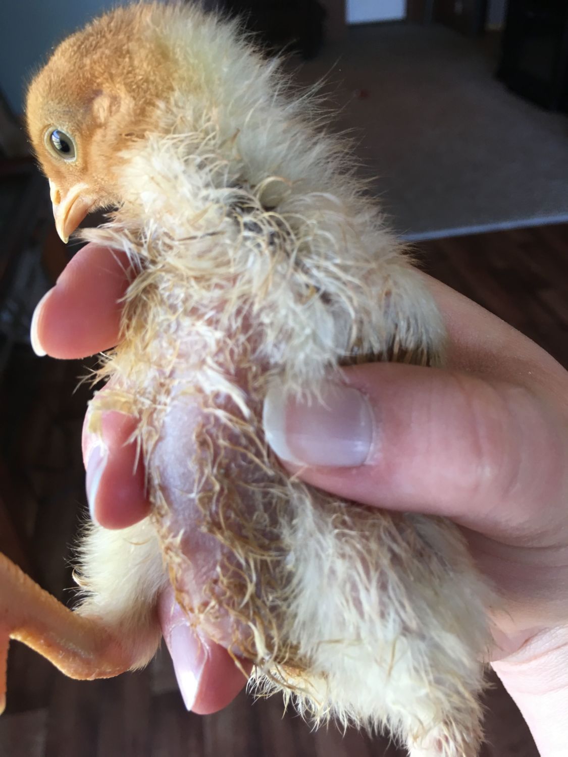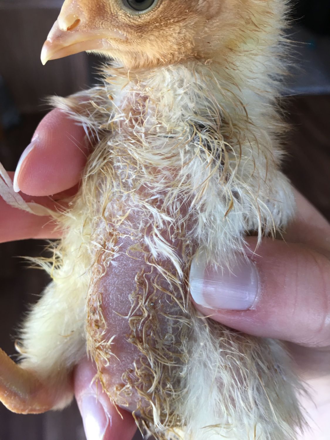 All my chicks are balding all over!! Any ideas? They have fresh pine bedding changed every morning. Heat lamp. Any ideas?